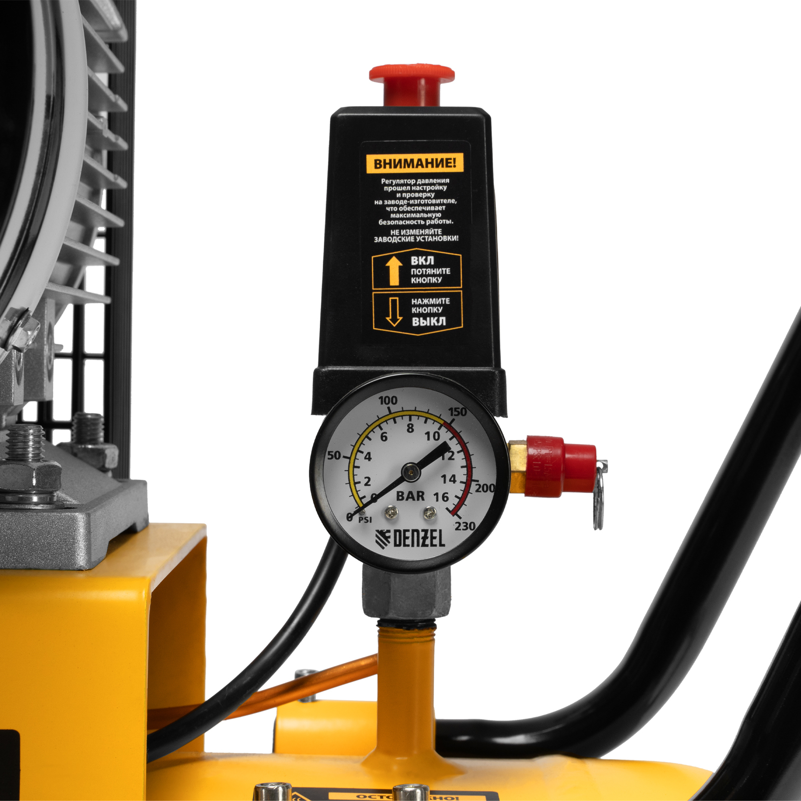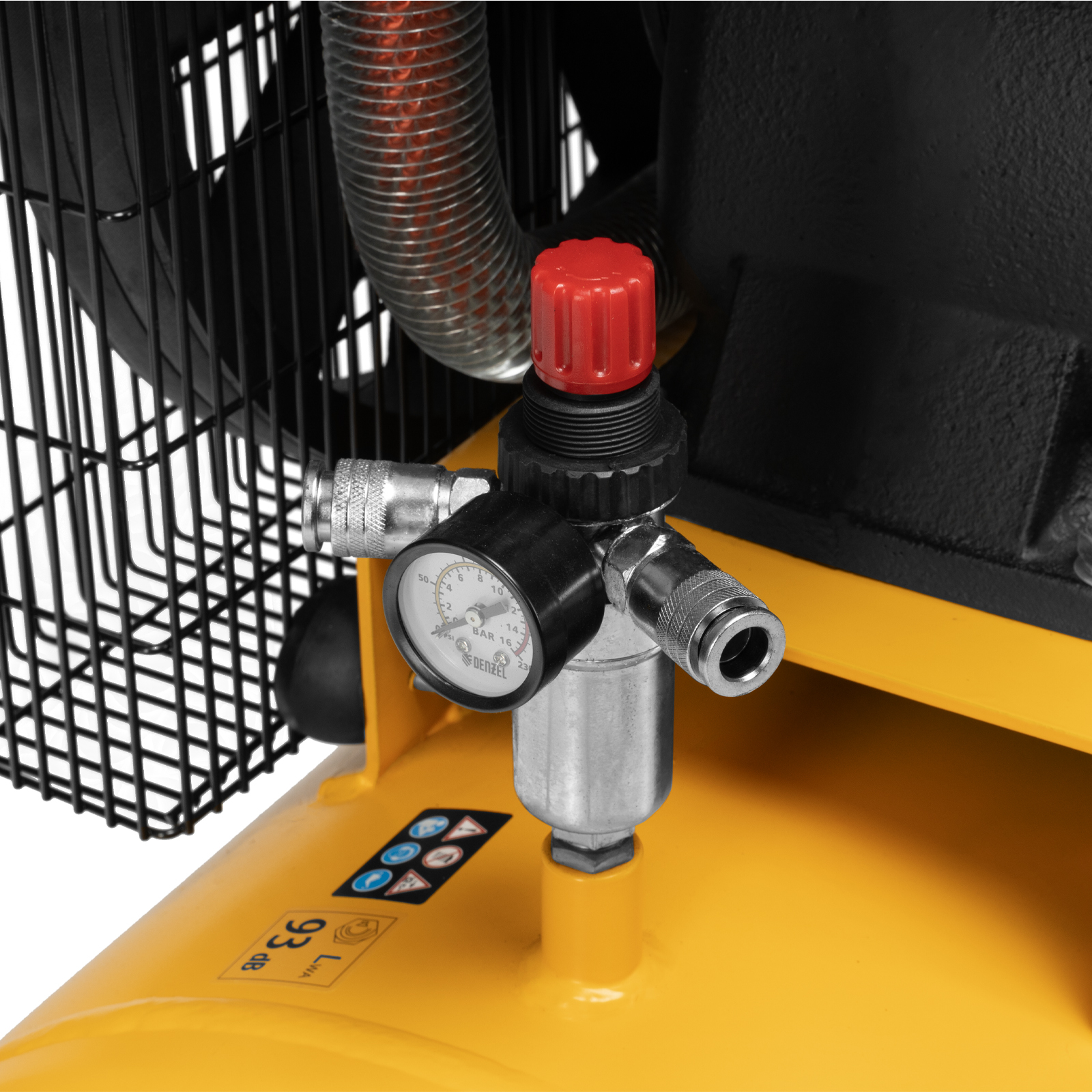 Удобный контроль давления в ресивере и пневмомагистрали — компрессор оснащен двумя механическими манометрами.