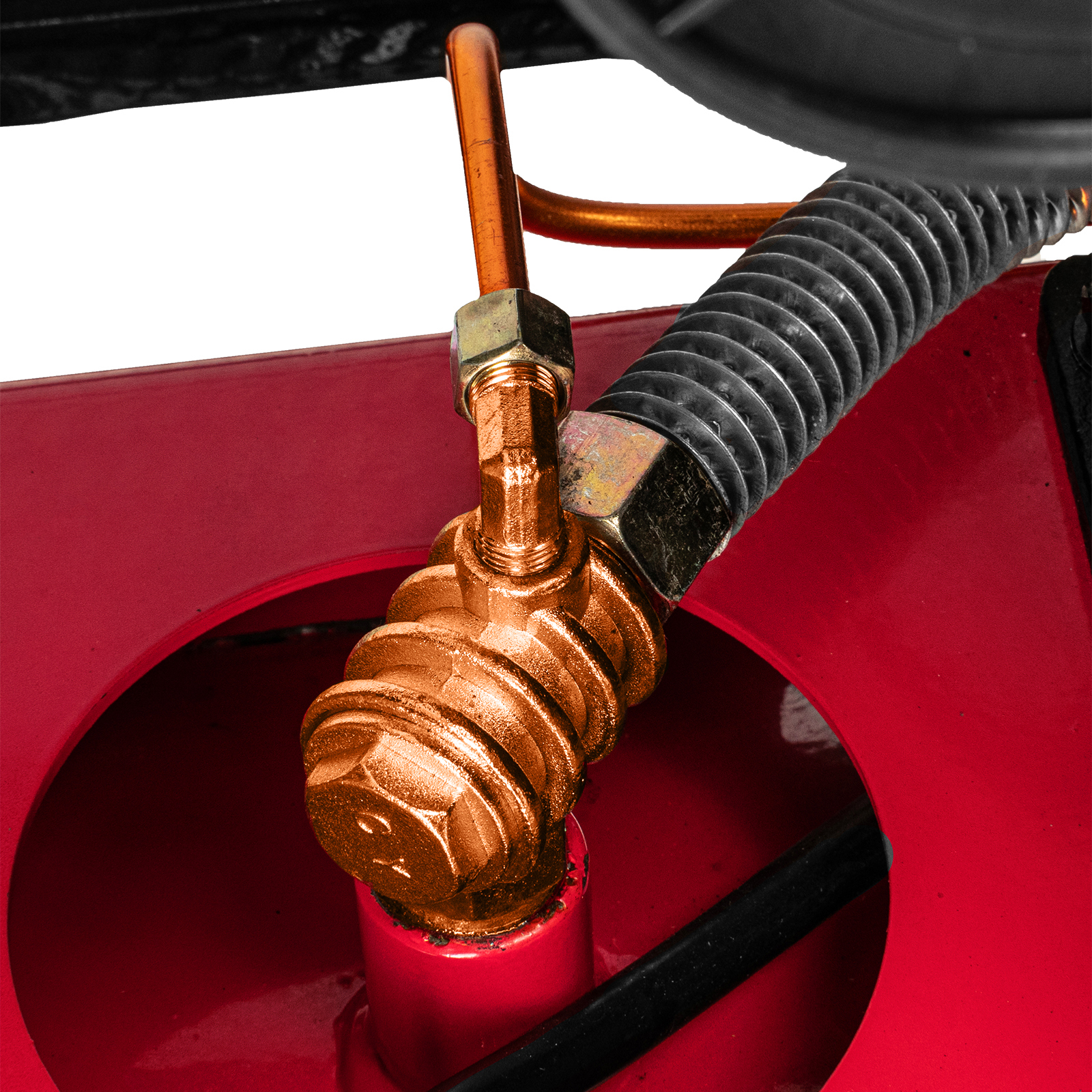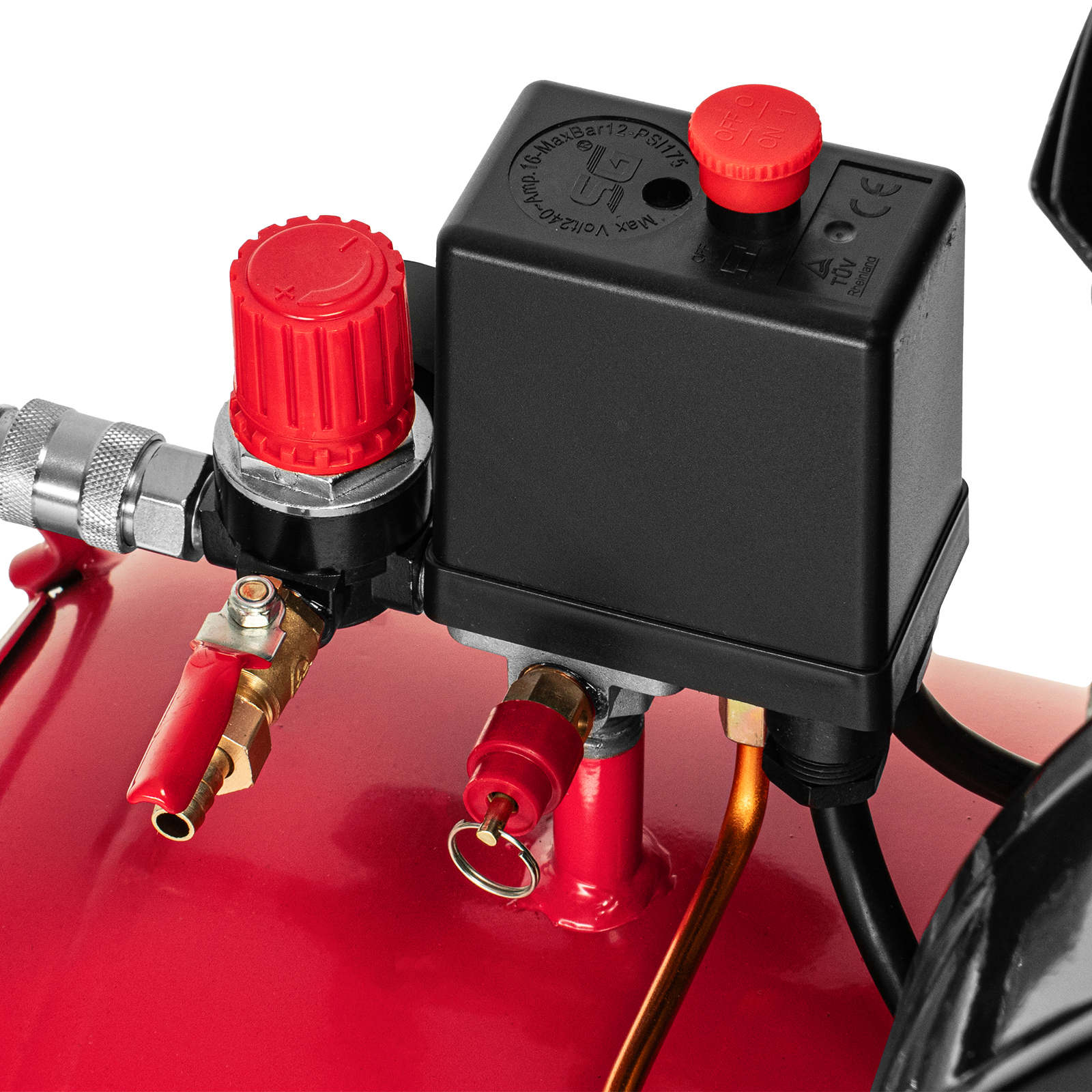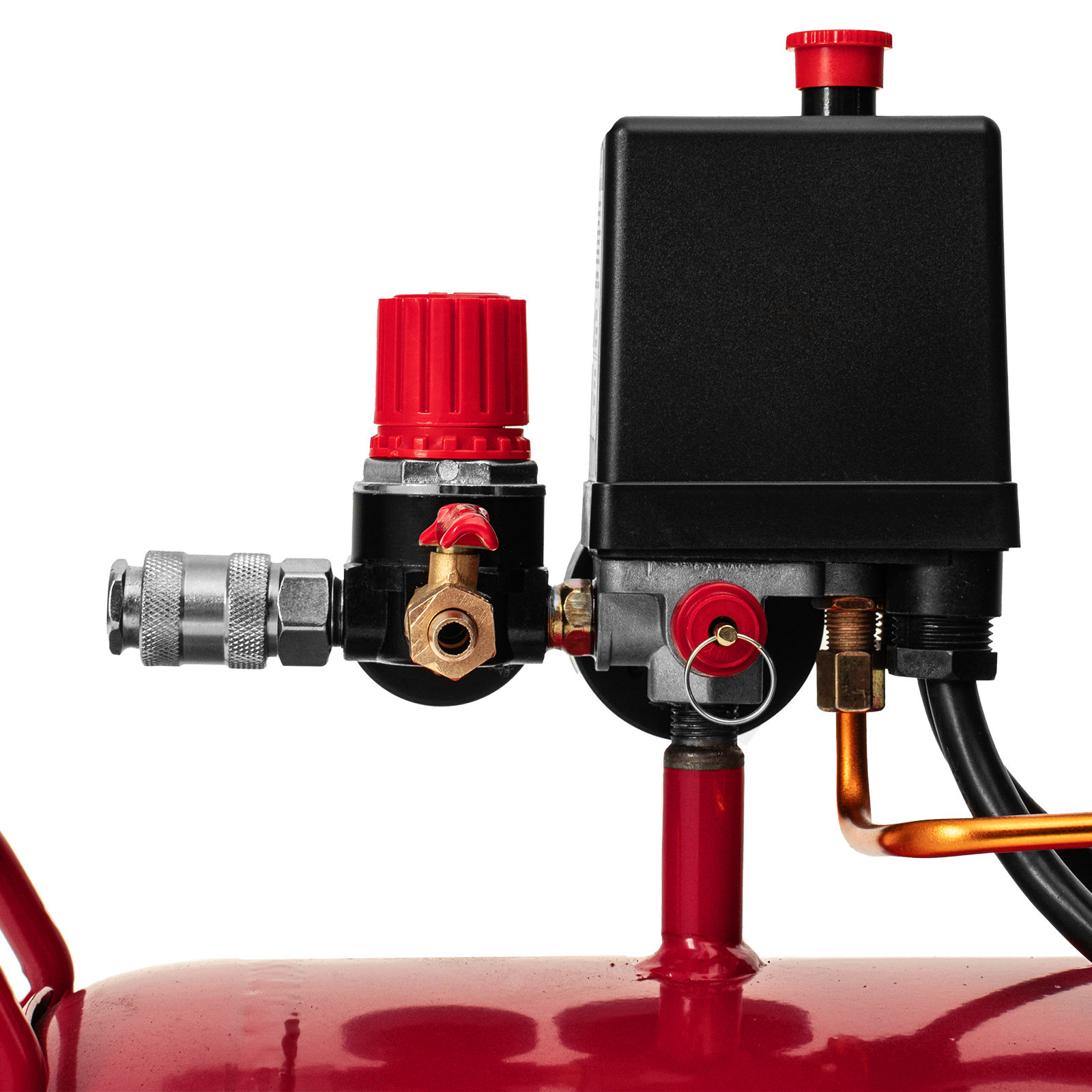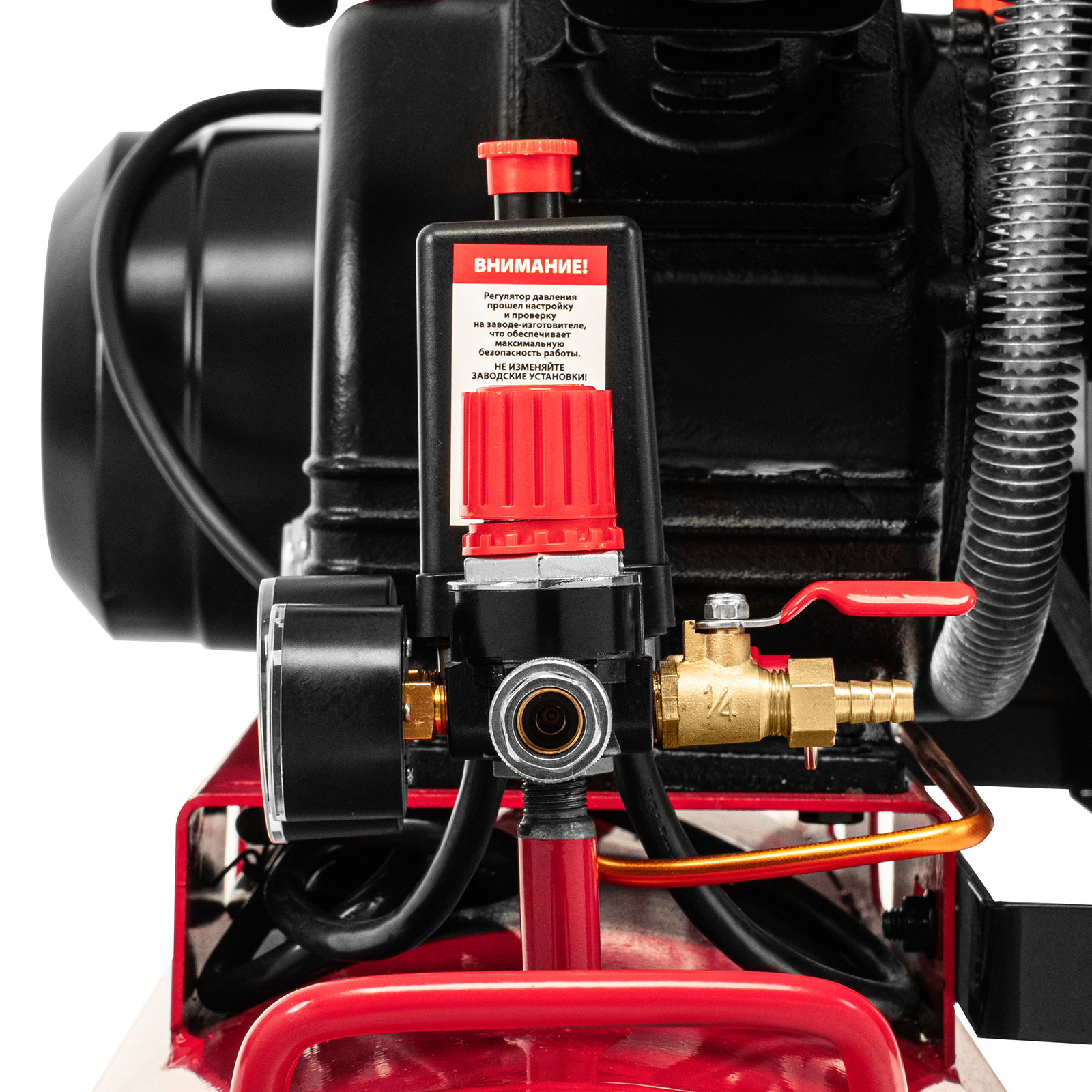Автоматическая регулировка производительности — прессостат останавливает двигатель при достижении максимального рабочего давления (8 бар) и запускает его при падении давления ниже минимально допустимого уровня.