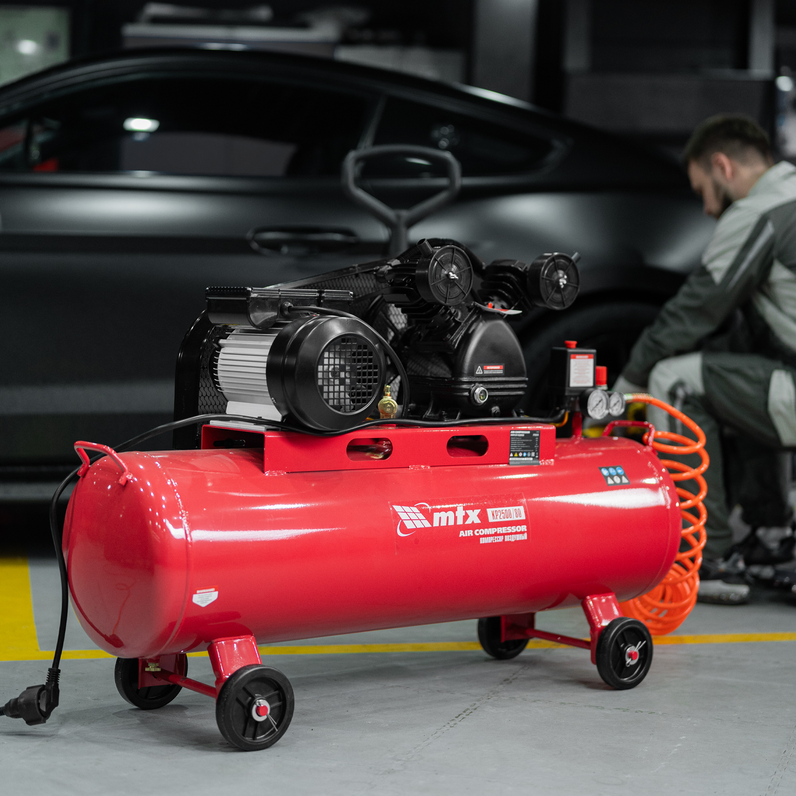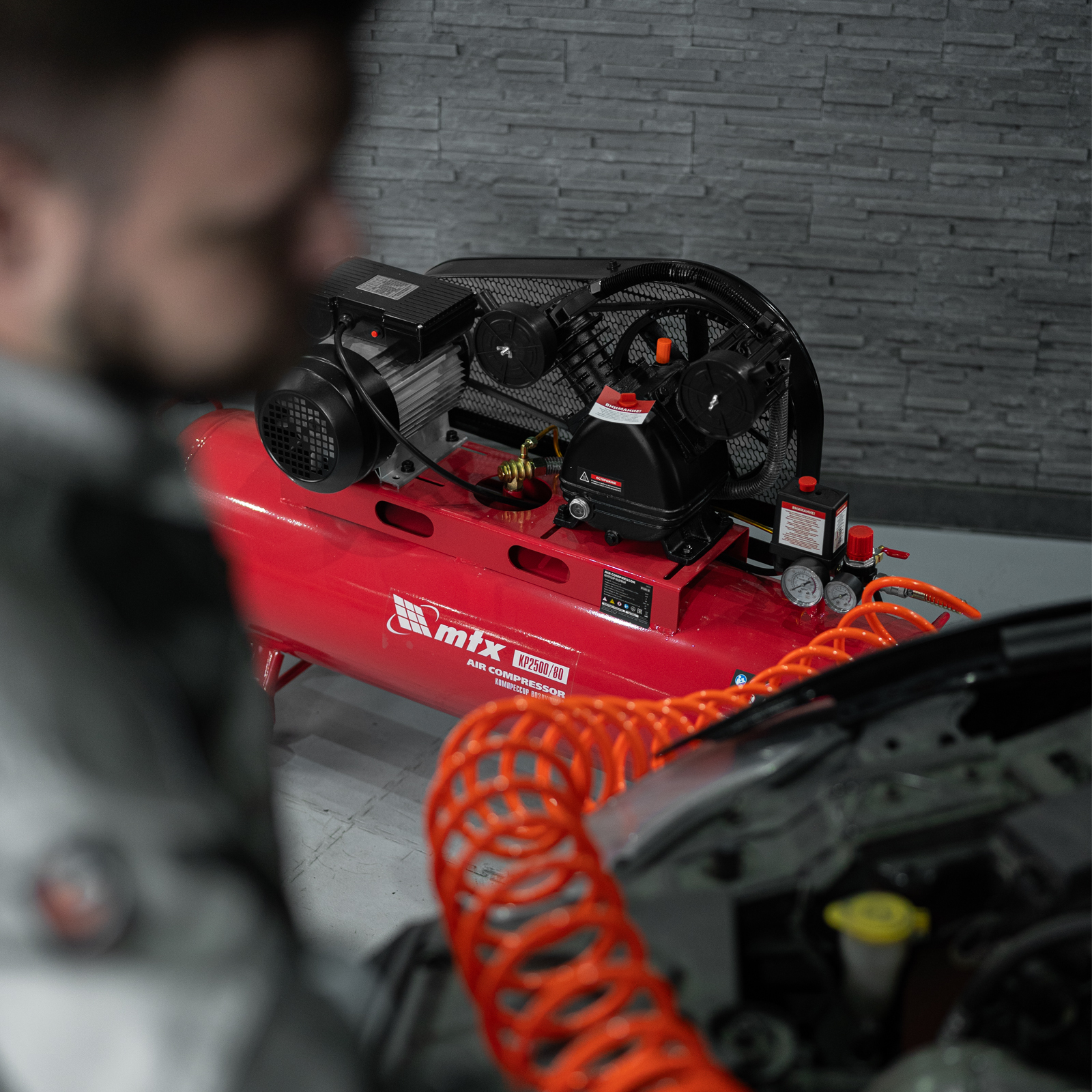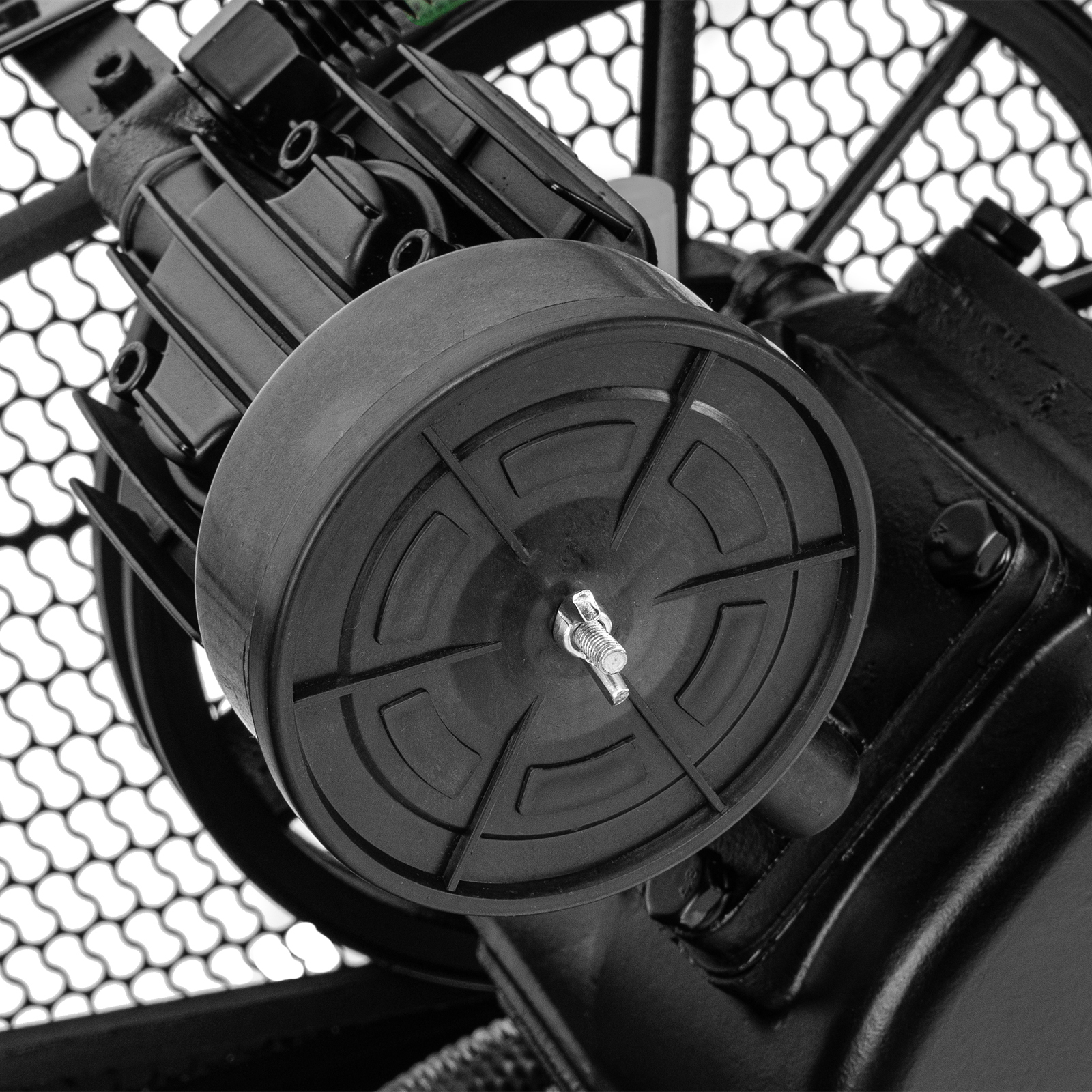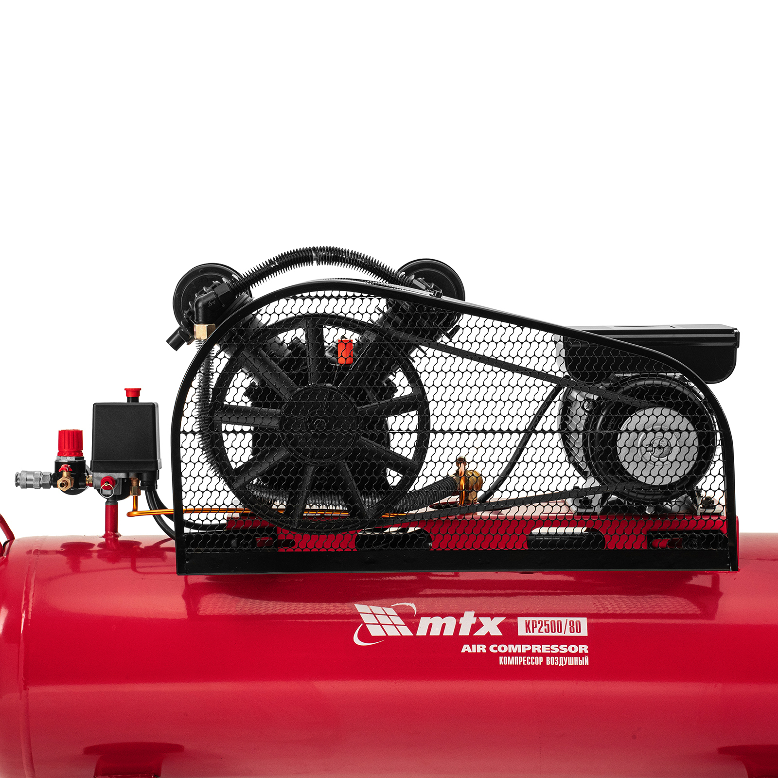 Автоматическая регулировка производительности — прессостат останавливает двигатель при достижении максимального рабочего давления (8 бар) и запускает его при падении давления ниже минимально допустимого уровня.