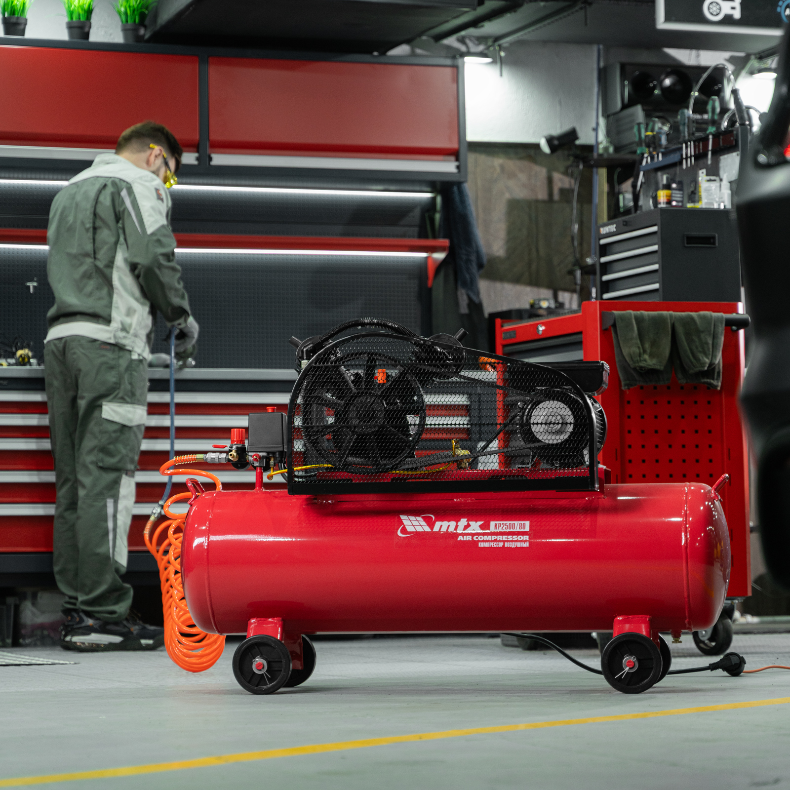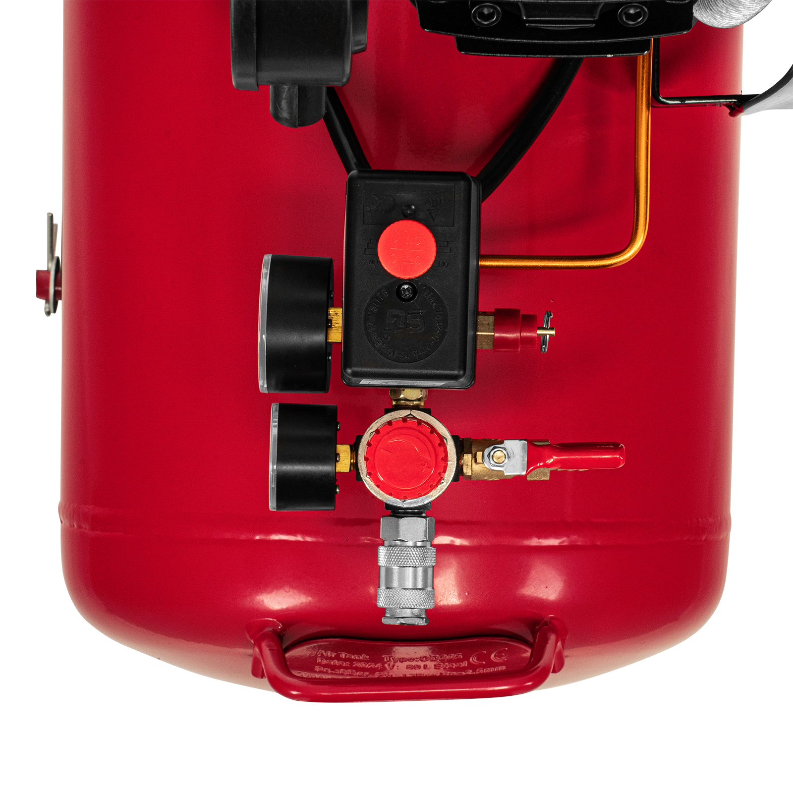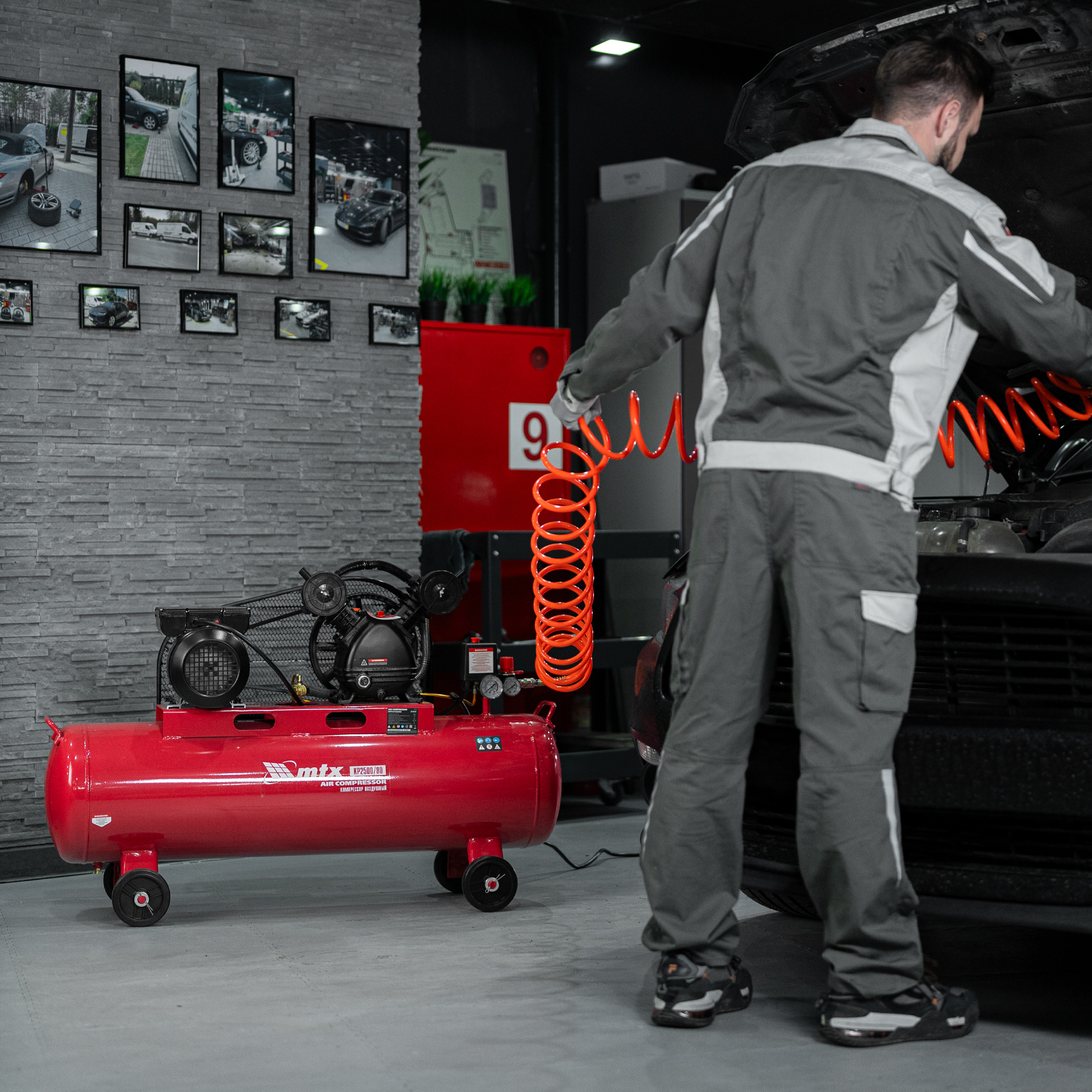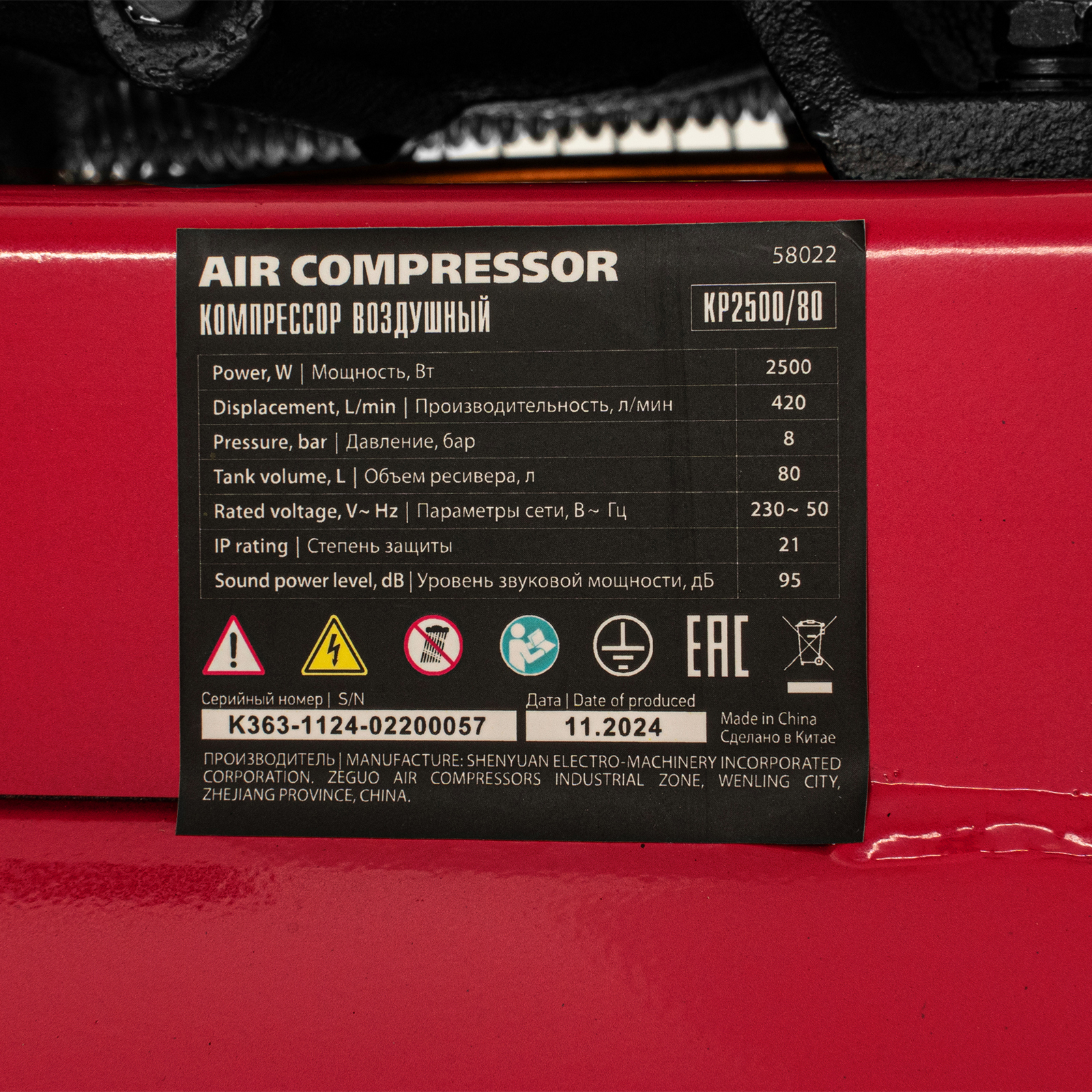 Автоматическая регулировка производительности — прессостат останавливает двигатель при достижении максимального рабочего давления (8 бар) и запускает его при падении давления ниже минимально допустимого уровня.