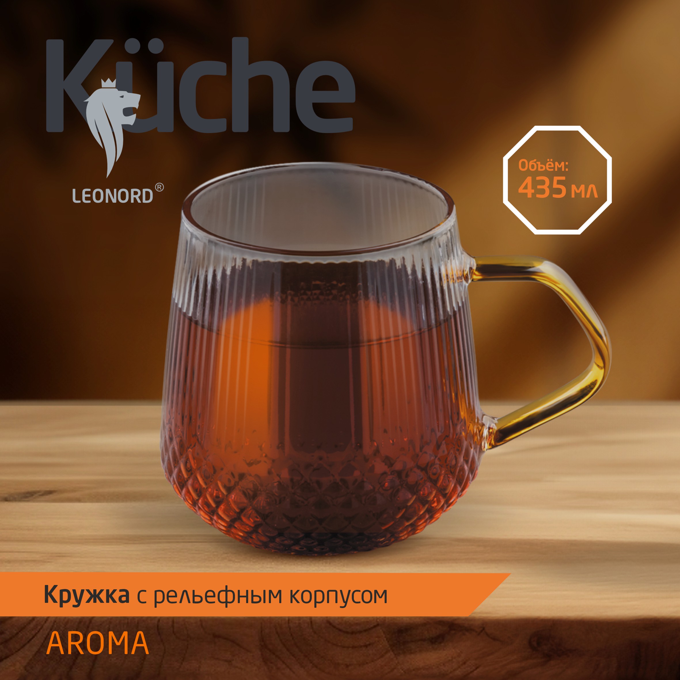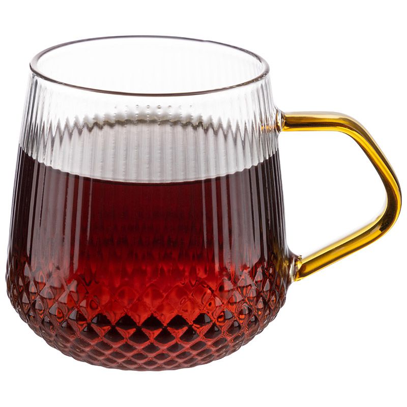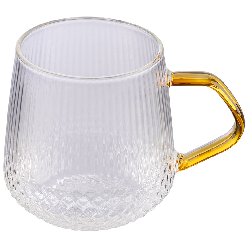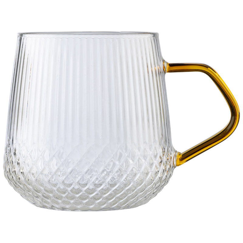 Кружка AROMA 435 мл из боросиликатного стекла с рельефным корпусом, с ручкой из цветного стекла Материал: термостойкое боросиликатное стекло.