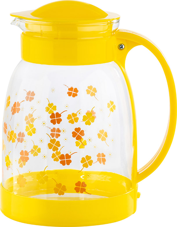 Кувшин, объем - 1800 мл. Корпус выполнен из жаропрочного стекла. крышка/ ручка из пластика. Толщина стекла - 1,2 мм. 4~11.5×10-6 - коэффициент линейного расширения. Для холодных и горячих напитков. Цвет: жёлтый. Не рекомендуется мыть в посудомоечной машине.