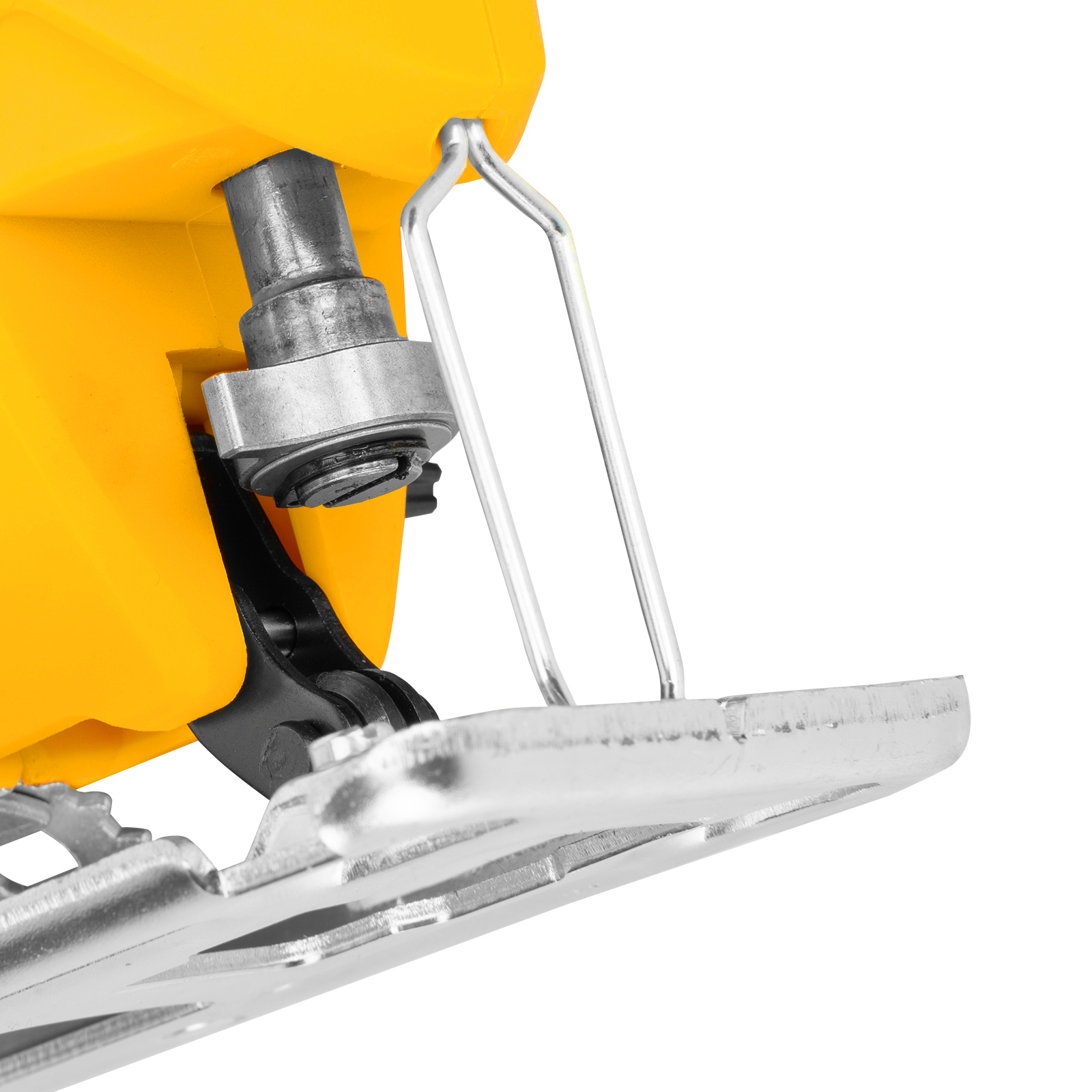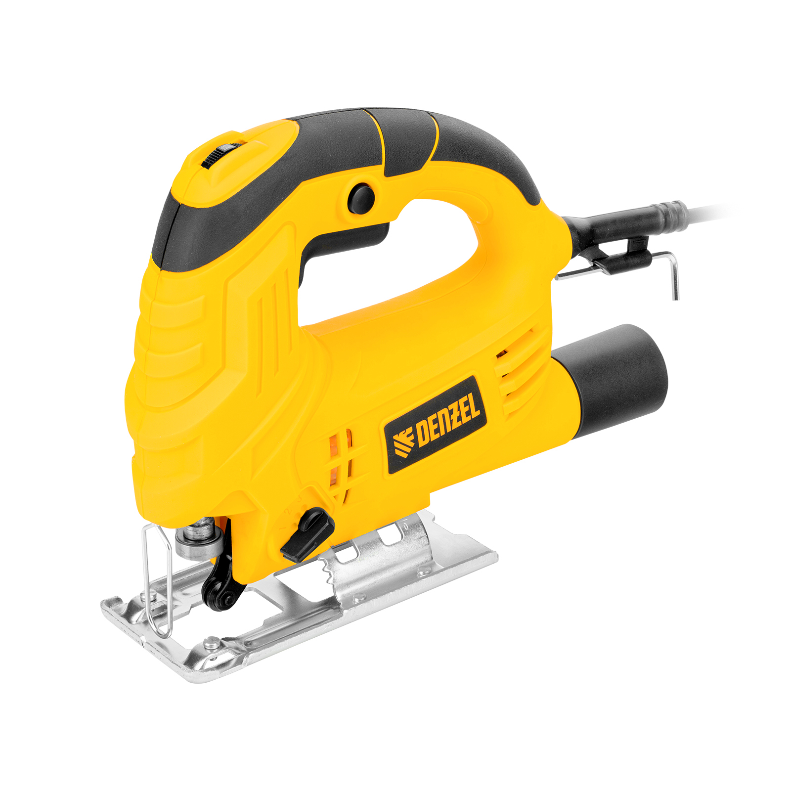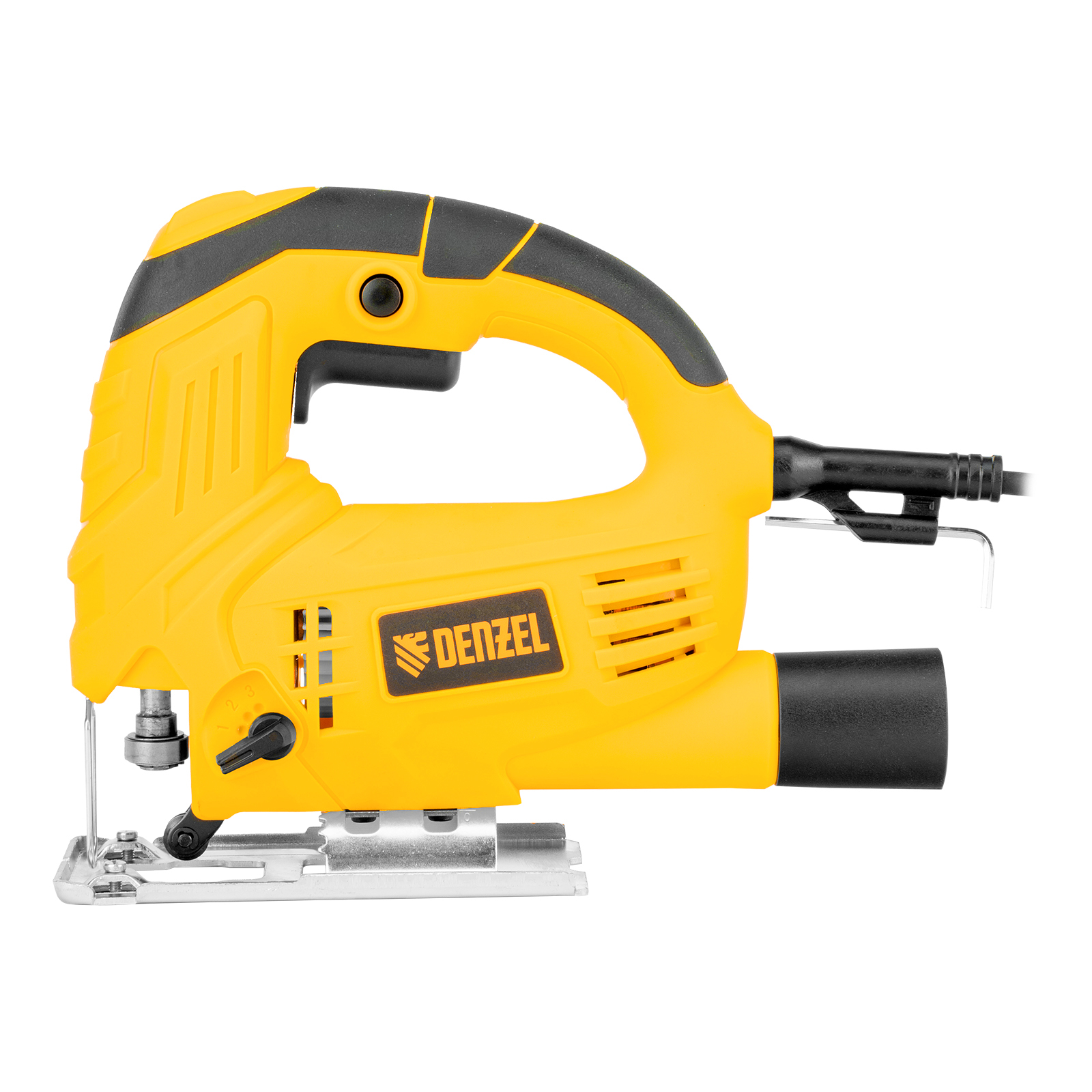 Электрический лобзик Denzel JSD-65 27102 мощностью 550 Вт обеспечивает глубину пропила в древесине до 65 мм, также позволяет выполнять прямой и фигурный рез металлических и пластиковых листовых материалов. Максимальная глубина пропила в стали составляет 8 мм, в цветном металле — 10 мм. Частота хода пилки составляет 1000-3000 ход/мин, маятниковый ход повышает удобство обработки древесины. В конструкции предусмотрен патрубок для подключения пылесоса — такое решение позволяет поддерживать чистоту на рабочем месте. Лобзик пригодится для проведения строительных и ремонтных работ, будет полезен в слесарной мастерской и в быту.ПреимуществаЭлектронная регулировка скорости — можно установить оптимальную частоту движений пилки в соответствии с типом материала и видом оснастки, для этого достаточно повернуть специальное кольцо.Высокая эффективность — предусмотрено 3 ступени регулировки маятникового хода для увеличения скорости реза и улучшения выброса опилок.Рез под углом до 45° — наклон подошвы легко регулируется.Простая подготовка к работе — пильное полотно надежно фиксируется в быстрозажимном пилкодержателе без использования дополнительных инструментов.Фиксация выключателя — клавишу пуска не нужно удерживать нажатой, что особенно удобно при длительной работе.Надежность — стальная подошва устойчива к повреждениям и деформации.Точный рез — использование параллельной направляющей позволяет производить ровный пропил на заданном расстоянии от края заготовки.Эргономичность — обрезиненная рукоятка обеспечивает надежный хват. Свободное перемещение по рабочей зоне — длина сетевого кабеля составляет 3 метра.Готовность к работе — в комплект поставки входит параллельная направляющая, 2 пильных полотна (для древесины и металла), переходник для пылесоса и шестигранный ключ.Гарантия 3 года — высокое качество инструмента подтверждено производителем.