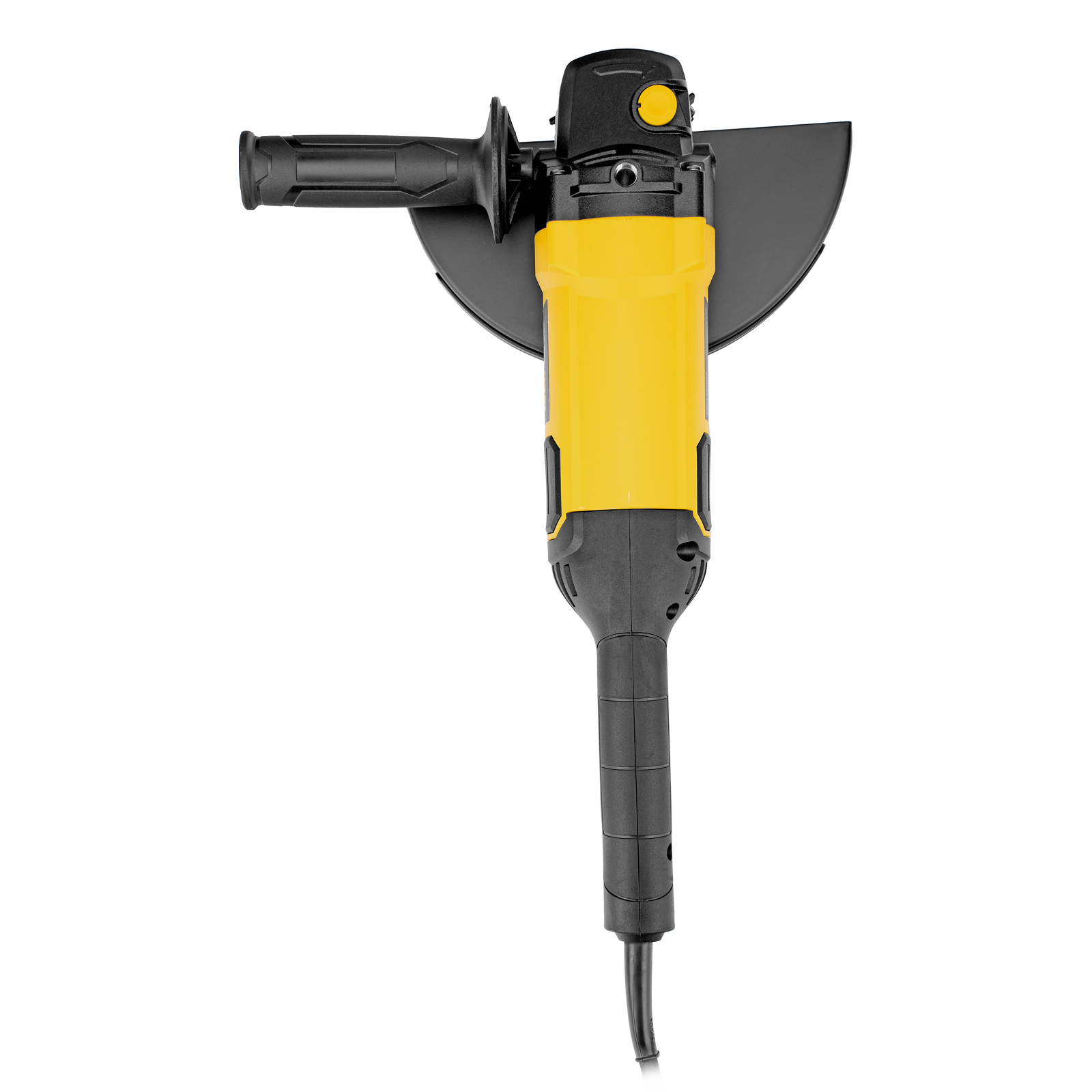 Угловая шлифовальная машина Denzel AGL230-2400 26920 мощностью 2400 Вт совместима с оснасткой диаметром 230 мм и имеет частоту вращения шпинделя 6600 об/мин. Предназначена для обработки металлических заготовок при помощи совместимой оснастки: шлифовальных и отрезных кругов, а также проволочных щеток. Благодаря функции плавного пуска машина включается без рывка и перегрузки электросети. Эффективная система пылезащиты продлевает срок службы инструмента. Углошлифовальная машина оптимальна для выполнения бытовых работ.ПреимуществаБезопасная работа — специальный кожух с бесключевой регулировкой защищает пользователя от осколков, искр и случайного контакта с диском.Защита от случайного включения — перед запуском машины необходимо нажать на клавишу блокировки, такое решение предотвращает травмирование.Комфорт во время длительной работы — благодаря фиксатору не нужно удерживать кнопку пуска нажатой.Быстрая подготовка к работе — функция блокировки шпинделя упрощает установку и замену оснастки, специальный ключ входит в комплект поставки.Удобный хват — боковую рукоятку можно установить сверху, справа или слева для наиболее комфортной работы.Эргономичность — корпус удобно удерживать в руке, резиновый кабель длиной 3 м позволяет свободно перемещаться по рабочей зоне.Простое обслуживание — в конструкции предусмотрен легкий доступ к щеточному узлу, запасные угольные щетки входят в комплект поставки.Гарантия 3 года — надежность углошлифовальной машины подтверждена производителем.