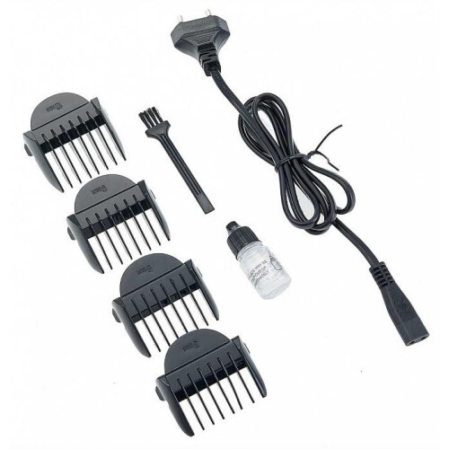 2Вт, лезвия из стали, 4 насадки (3-12мм), аккумуляторная, смазочное масло, расческа, ножницы, щеточка