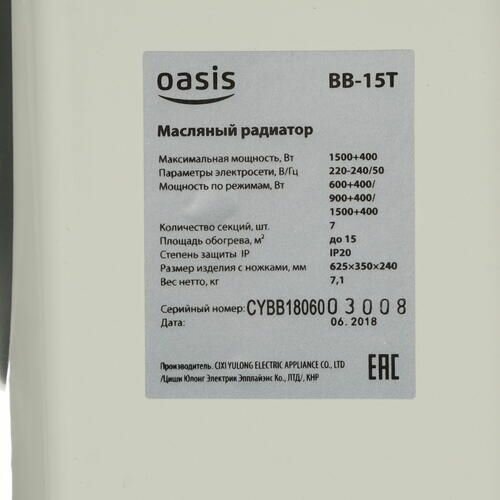 Высококачественные масляные радиаторы Oasis не только выделяются современным привлекательным дизайном, но и характеризуются превосходными теплообменными показателями и высокой эффективностью работы. Радиаторы Oasis отлично подходят для обогрева жилых помещений в холодное межсезонье, а также подсобных помещений, не подключенных к отоплению. Каждая модель имеет три ступени мощности, максимум которой в зависимости от модификации составляет 1, 1. 5, 2 и 2. 5 кВт. Лаконичный дизайн радиатора серии BВ органично впишется в любой интерьер. Радиатор очень удобен в использовании, прост в установке, а также обладает повышенной теплоотдачей и эффективным распределением воздушного потока. Высокий уровень безопасности достигается электрозащитой класса II, а также предусмотренной защитой от перегрева. Заземление и уровень защиты соответствуют европейским стандартам
