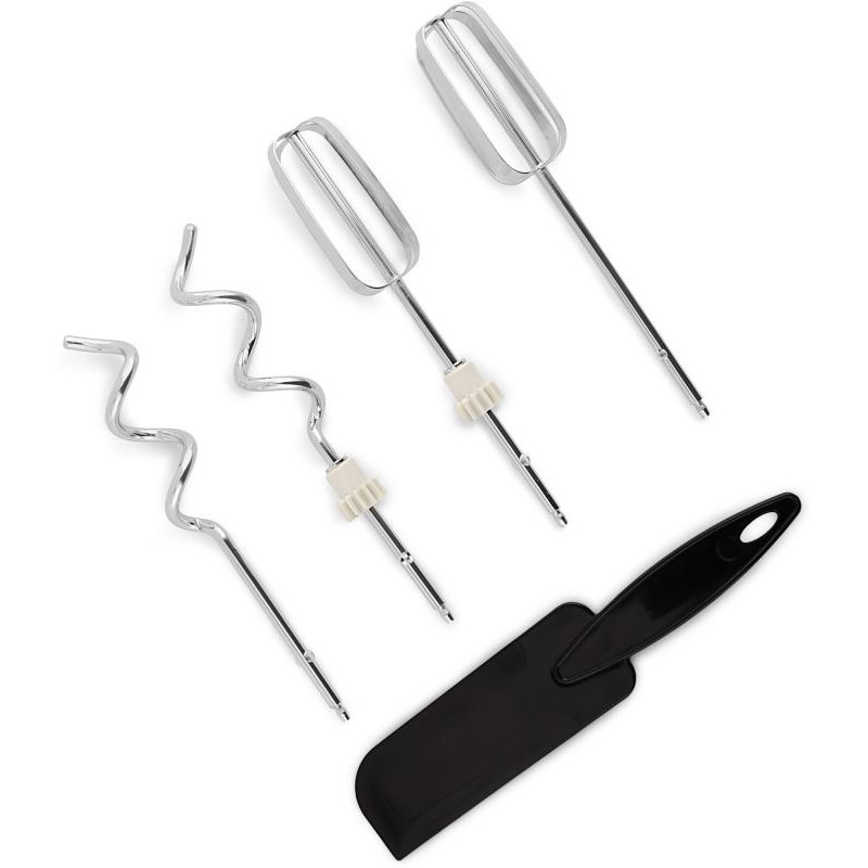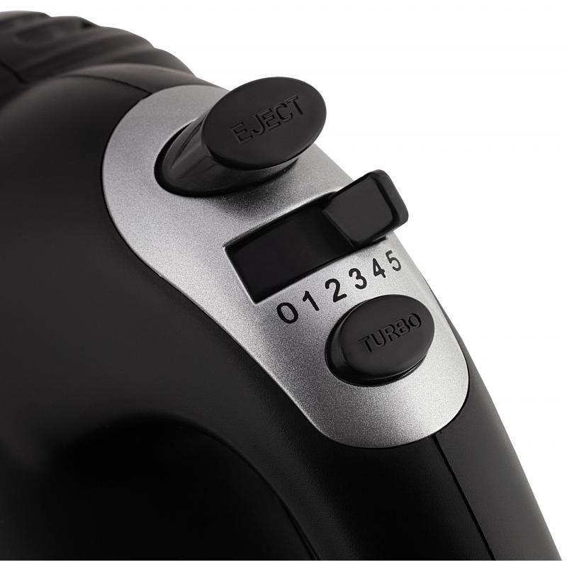 В комплекте с миксером идут две насадки: венчик для взбивания и крючки для замешивания теста. Кнопка для быстрого снятия насадок и режим Турбо делают использование миксера еще более удобным и эффективным.