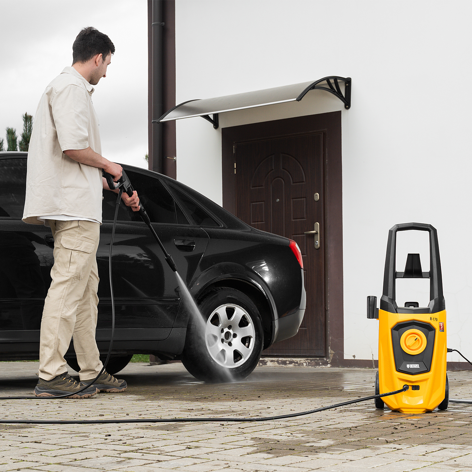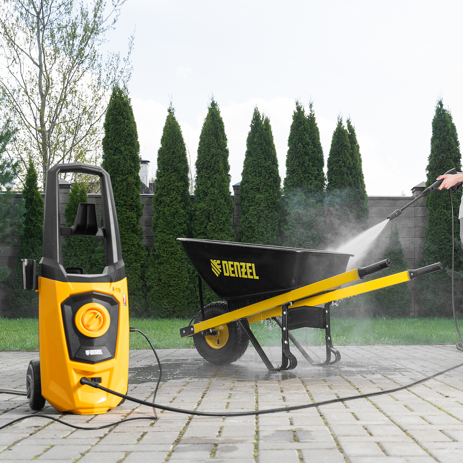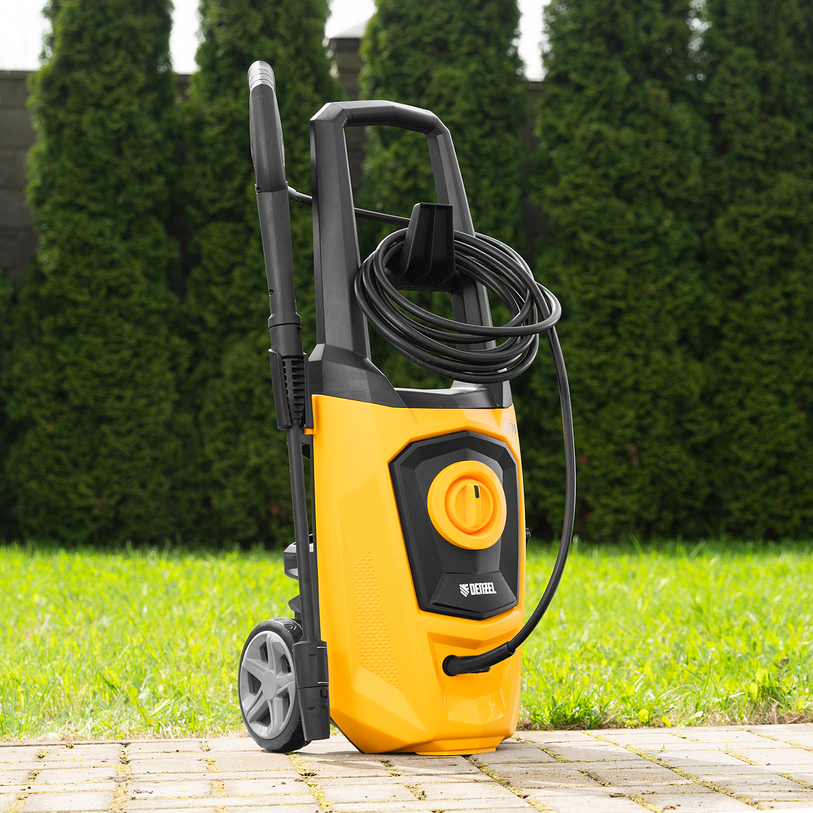 Длина шланга и кабеля 5 м — не нужно часто перемещать машину, можно работать на удалении от розетки.