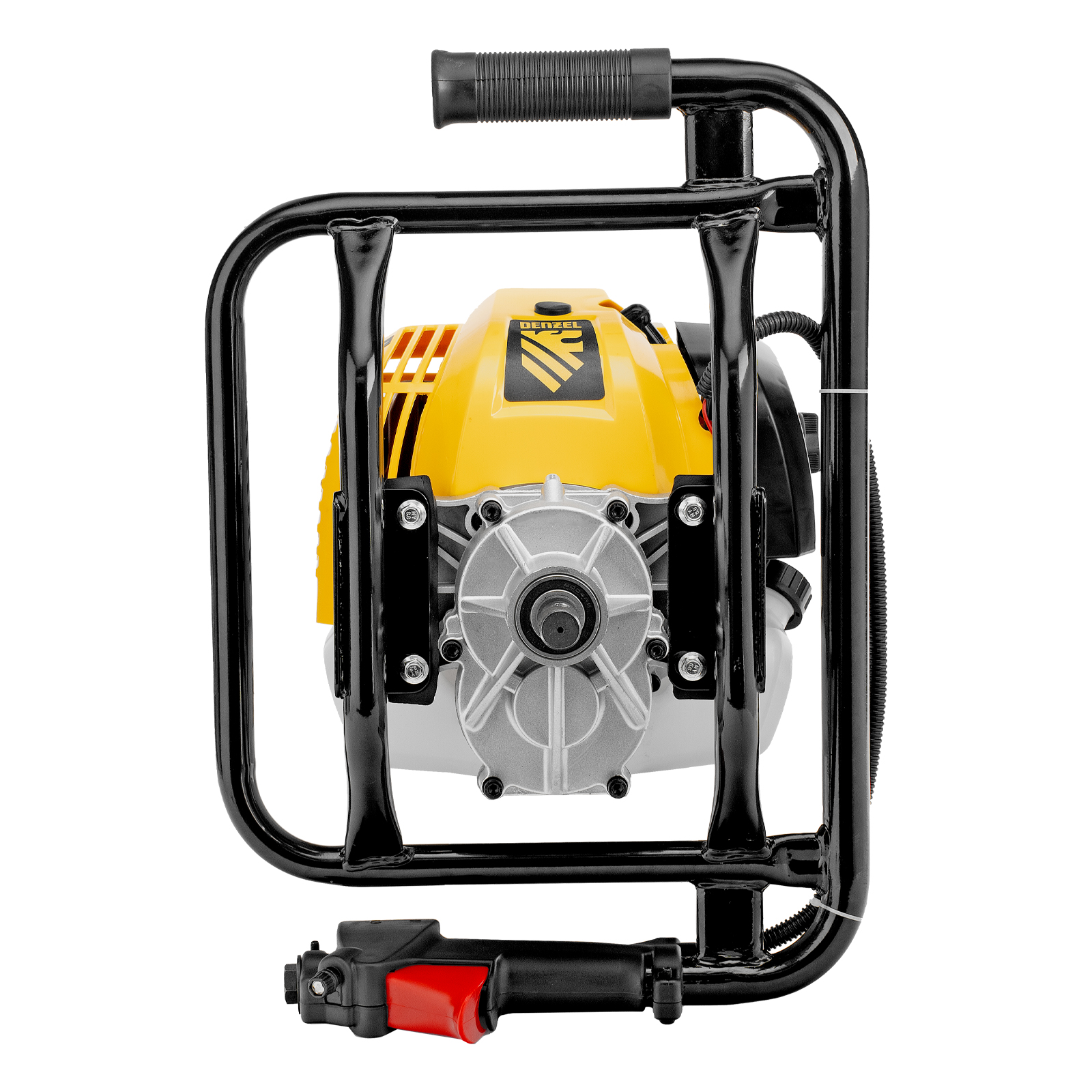 Мотобур Denzel DX-52 56001 с объемом двигателя 52 см3 и диаметром соединения 20 мм предназначен для получения отверстий и углублений во льду или в грунте максимальным диаметром 300 мм. Мощный и экономичный двигатель мощностью 3 л. с. позволяет эффективно решать поставленные задачи. Для бурения отверстий диаметром более 150 мм и глубиной более 1 м предусмотрена возможность управления мотобуром двумя пользователями. Устройство будет полезно на строительной площадке, загородном участке, пригодится также во время зимней рыбалки.ПреимуществаНадежная конструкция — корпус из высококачественного ударопрочного пластика и рама устойчивы к механическим воздействиям, усиленный редуктор рассчитан на интенсивное использование.Мощный и экономичный двигатель — техника обеспечивает высокую эффективность работы и низкий расход топлива.Удобное управление — выключатель зажигания и курок газа расположены на правой рукоятке.Безопасность пользователя — блокиратор курка газа препятствует случайному запуску шнека.Праймер подкачки топлива — двигатель легко запустится в холодную погоду или после долгого простоя.Легкая установка оснастки — благодаря быстросъемному соединению шнек фиксируется на выходном валу за несколько секунд.Быстрая подготовка к работе — мотобур поставляется в сборе, достаточно добавить смазку при необходимости, установить шнек и залить топливо в бак (шнек в комплект не входит).Удобное приготовление топливной смеси — специальный дозатор входит в комплект поставки.Решение широкого спектра задач — выходной вал диаметром 20 мм совместим со шнеками для грунта и льда, а также с удлинителями соответствующего присоединительного размера.Простое обслуживание — конструкцией предусмотрен легкий доступ к воздушному фильтру для его осмотра и очистки.Комфортная работа — оптимизированная антивибрационная система снижает нагрузку на руки.Гарантия 3 года — надежность мотобура подтверждена производителем.