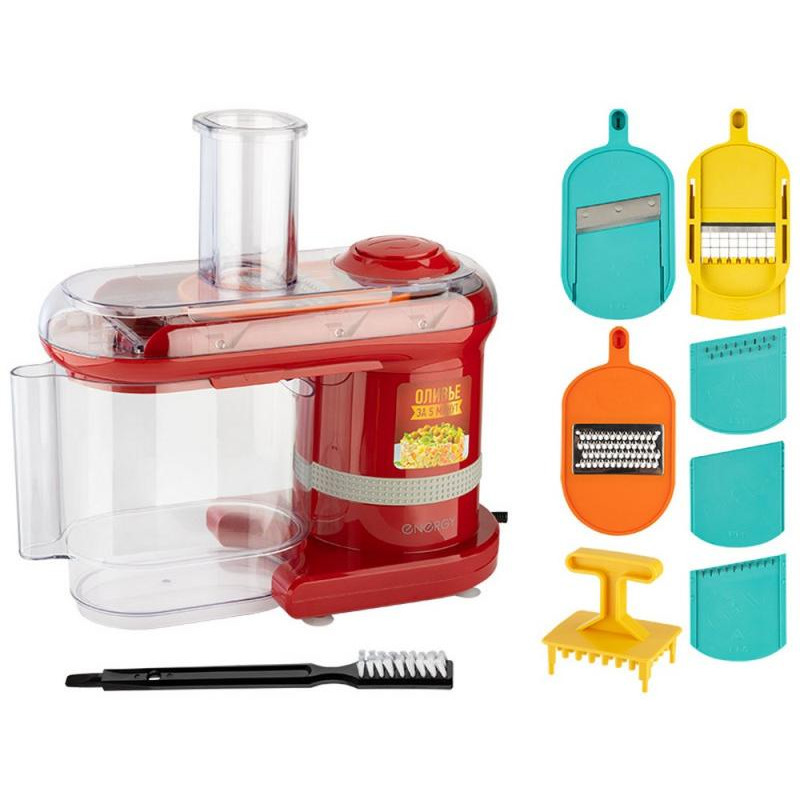 150Вт, 7 типов нарезки, загрузочный отсек d76мм, импульсный переключатель, щетка для очистки в комплекте, отсек для хранения аксессуаров