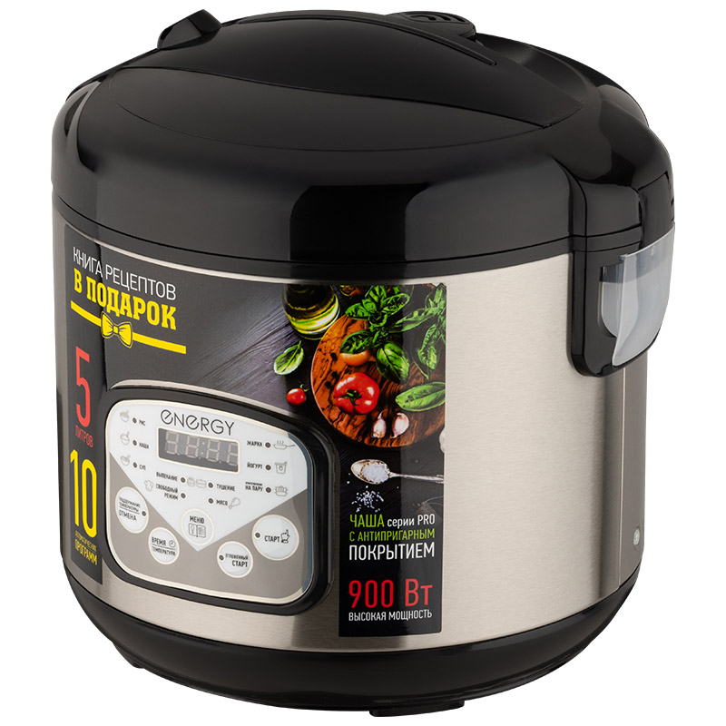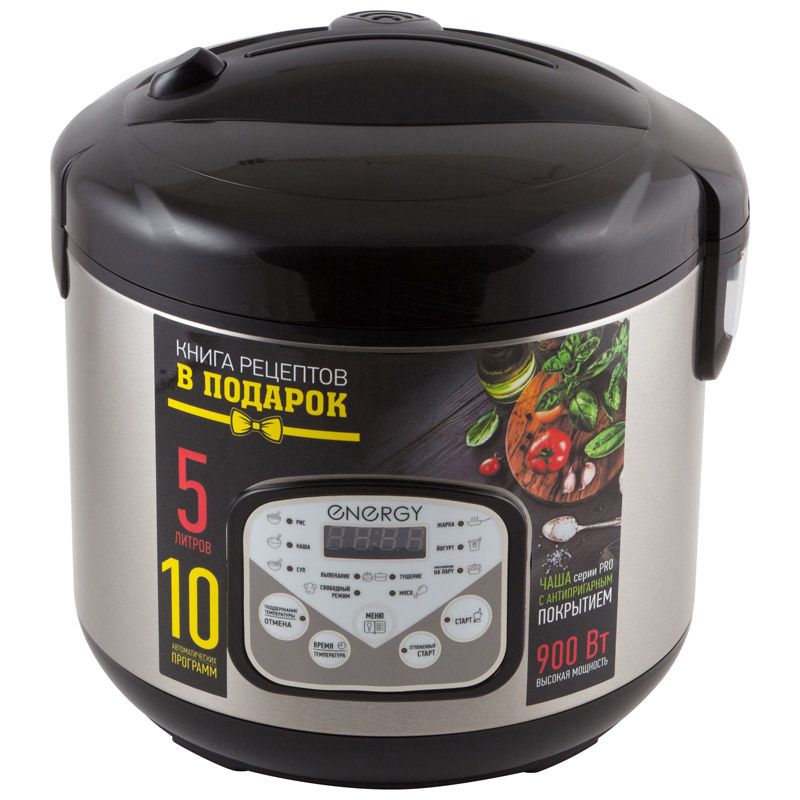 Объем 5 л Чаша с антипригарным покрытием Отложенный старт Поддержание температуры Автоматическое отключение системы при перегреве LED дисплей В комплекте: мерный стаканчик, ложка, контейнер-пароварка 10 программ приготовления: Рис/Каша/Суп/Жарка/Йогурт/Приготовление на пару/Выпекание/Тушение/Свободеый режим/Мясо Поддержание температруры/Отложенный старт Съемный шнур питания Корпус из нержавеющей стали Мощность 900 Вт