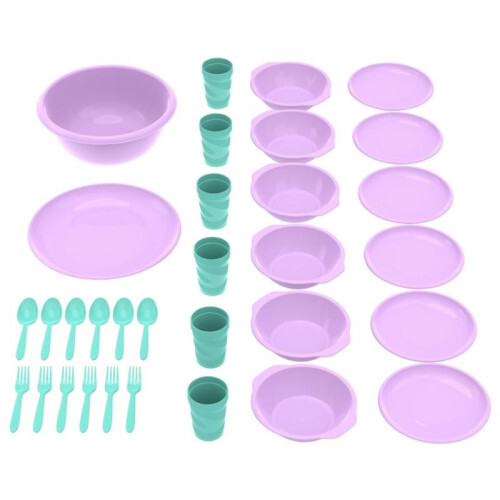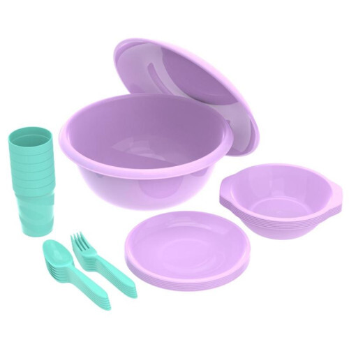 32предм, пластик, на 6 персон, миска 5л, тарелка 30.5см, тарелки 0.7л - 6шт, тарелки 19.5см - 6шт, стаканы 250мл - 6шт, вилки - 6шт, ложки - 6шт