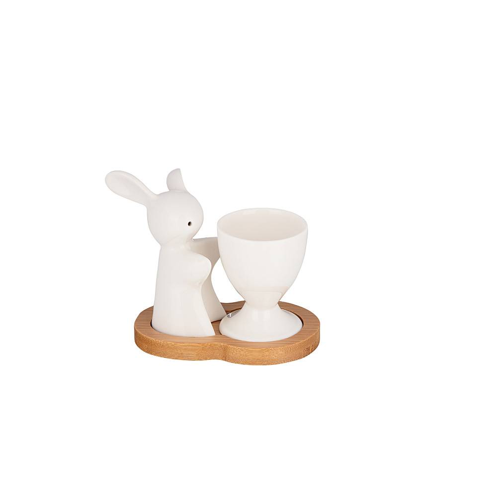 3предм, фарфор/дерево, подставка для яйца + солонка + дер.подставка