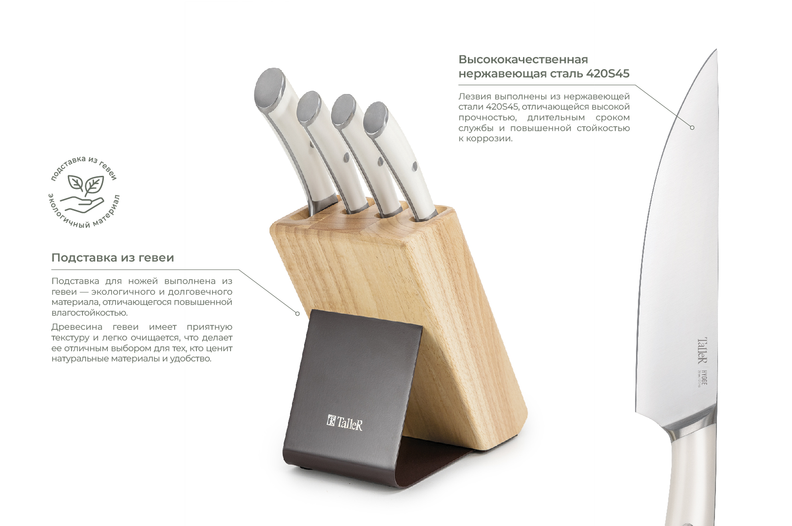 Лезвия ножей сделаны из твердой коррозионностойкой стали AISI 420S45 (3Cr13).