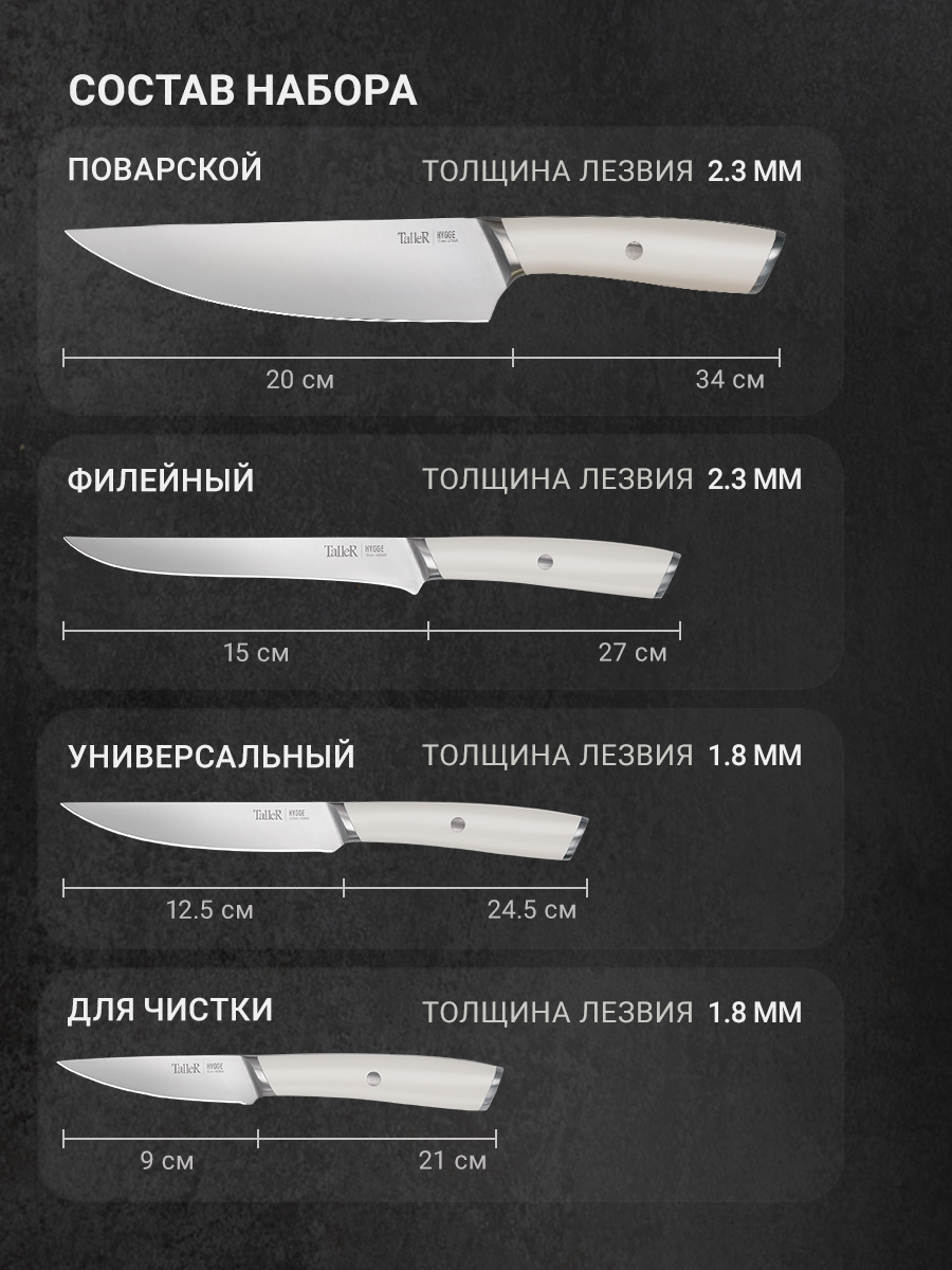 Состав набора (длина лезвия, толщина лезвия):