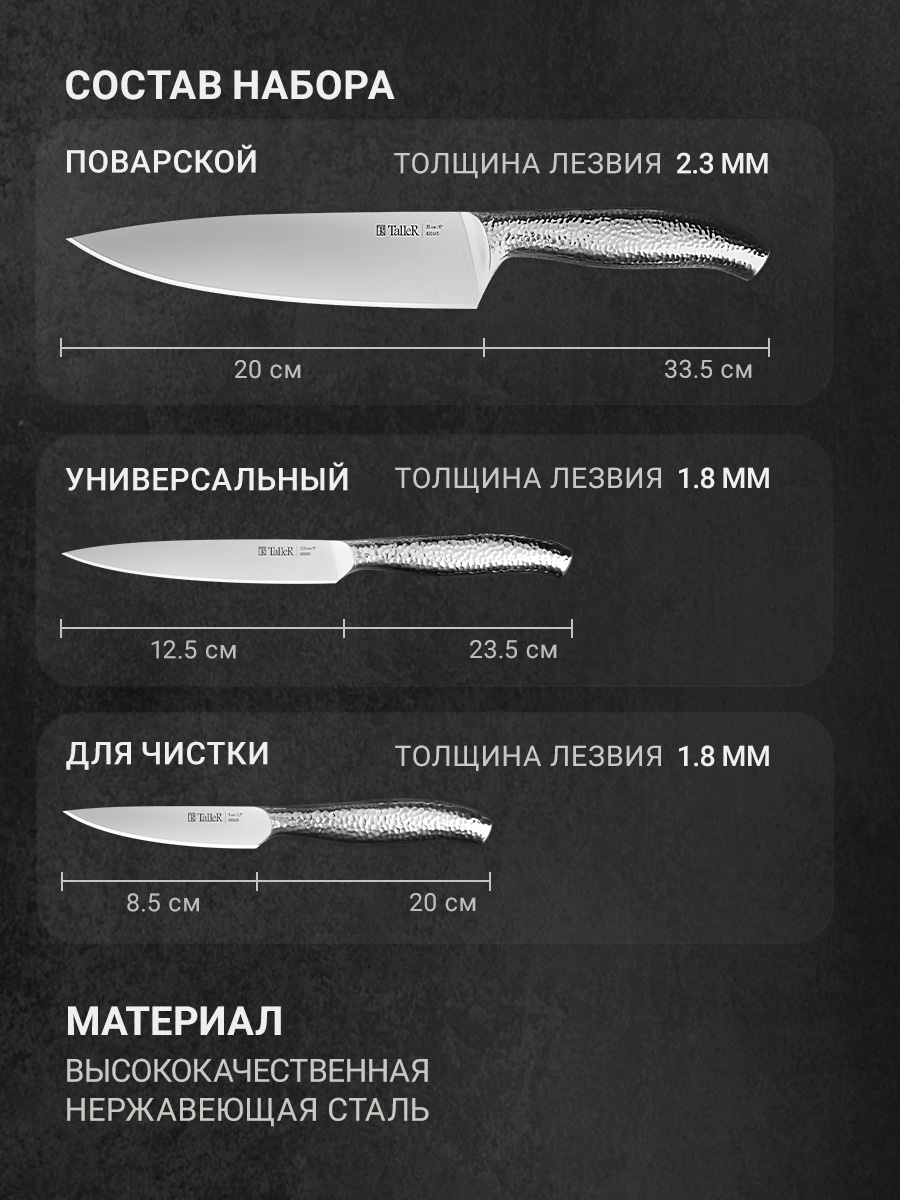 Набор ножей Трио, 3 предмета
