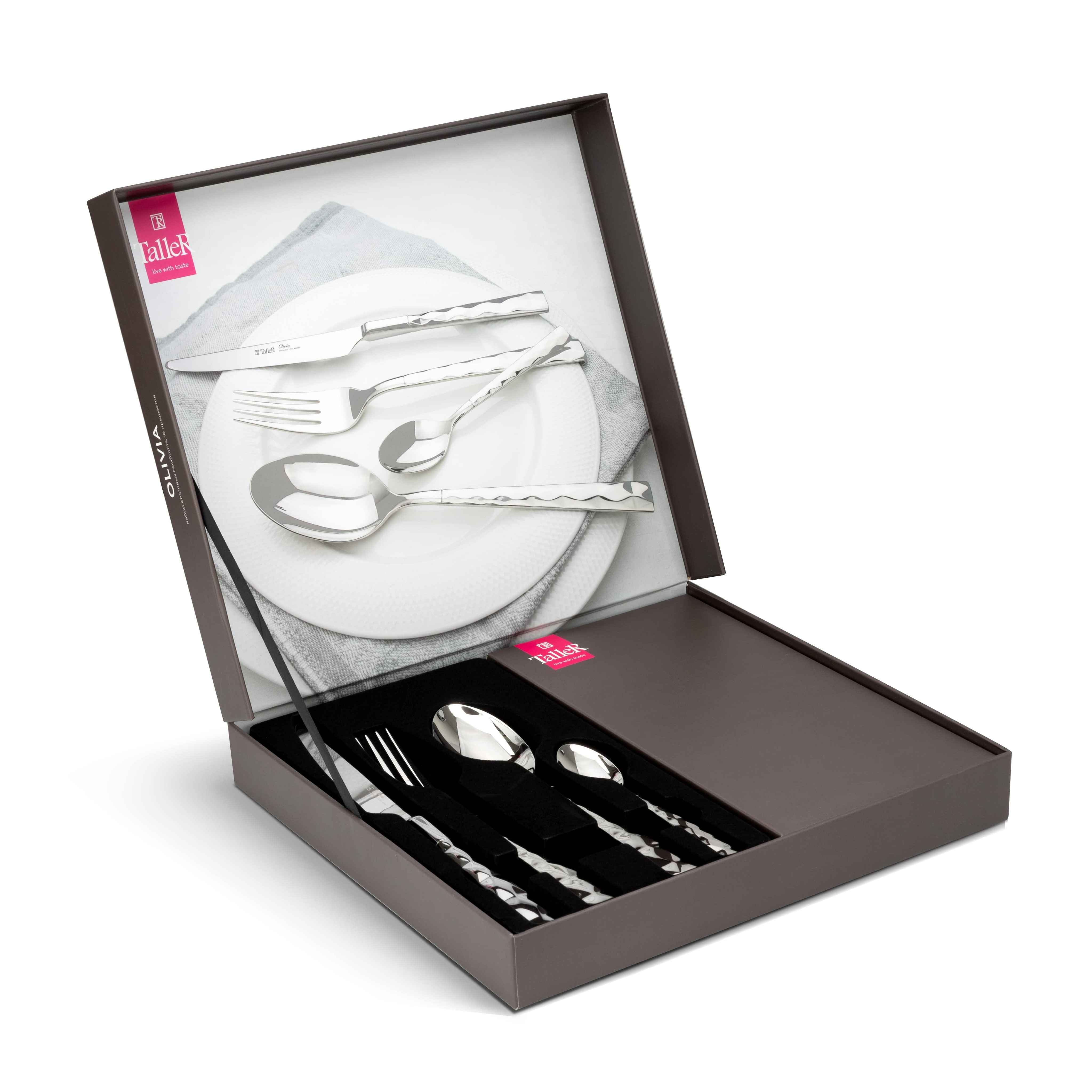 Состав набора: ложки столовые 4 шт., ложки чайные 4 шт., вилки 4 шт., ножи столовые 4 шт.