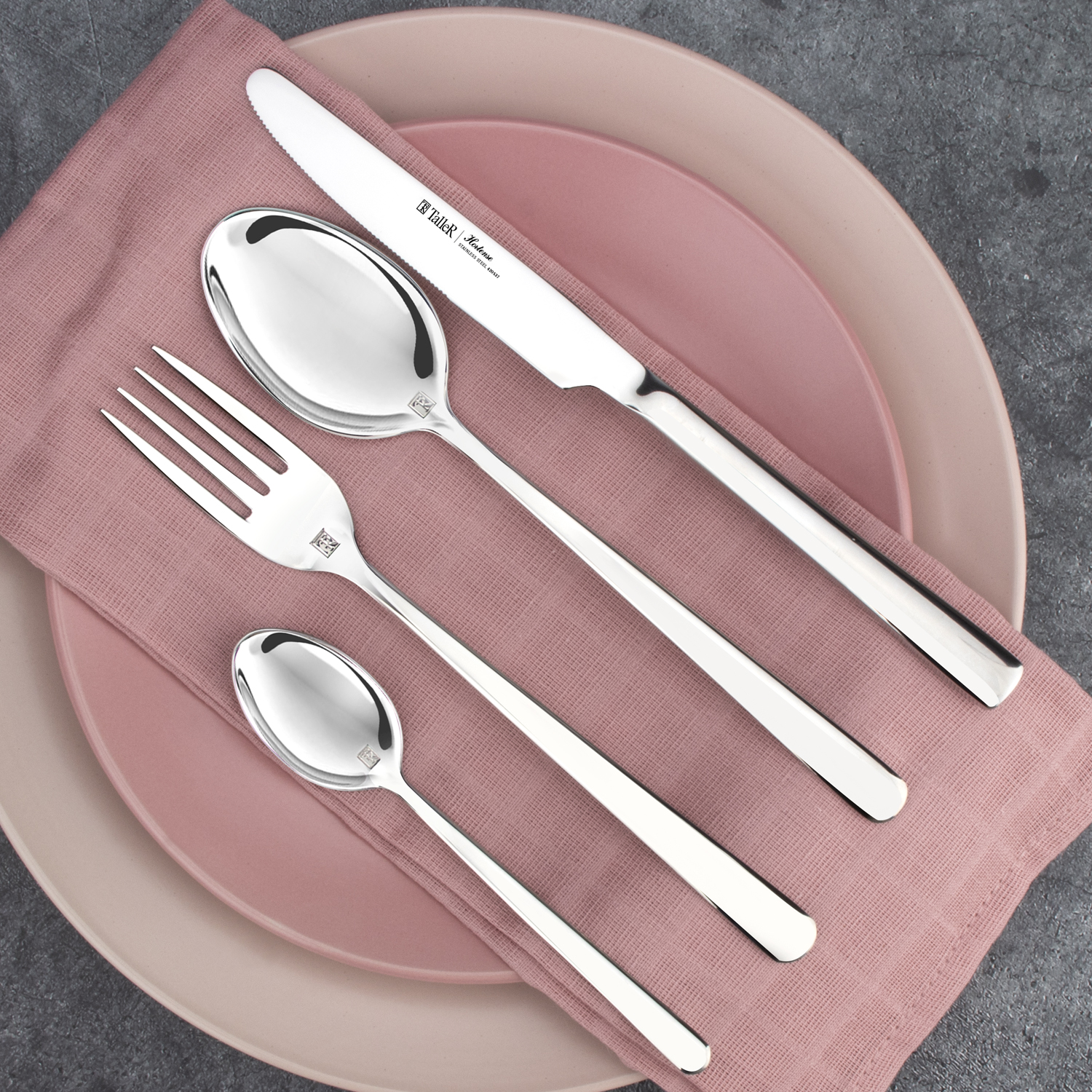 Столовые приборы отличаются идеальной обработкой кромки и высоким качеством полировки. Отлично сбалансированные ручки приборов позволяют приборам удобно ложиться в руку.