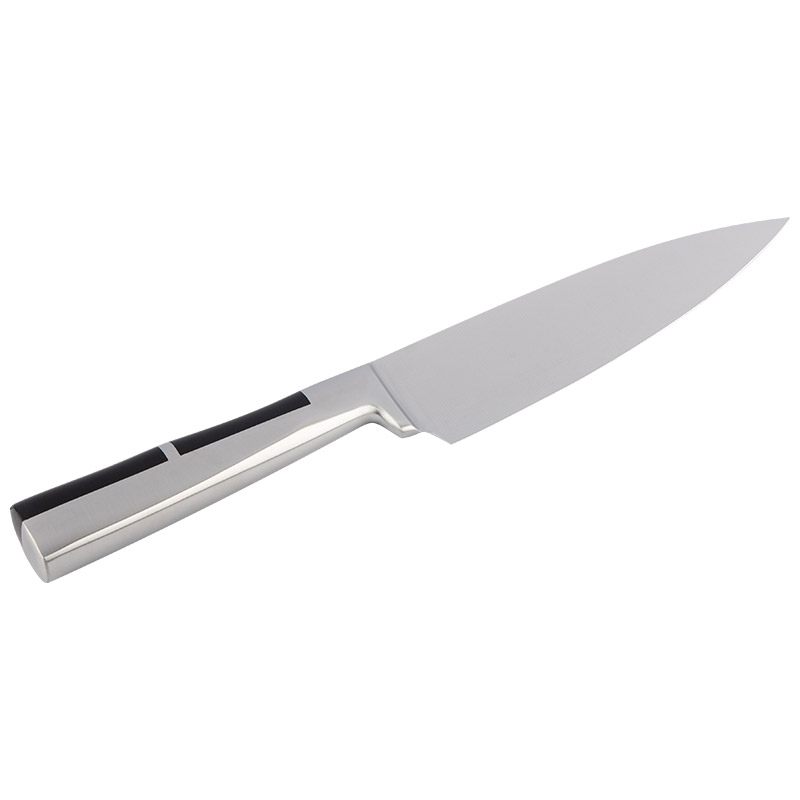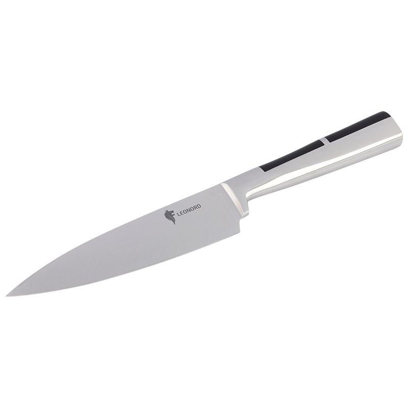 Кованый цельнометаллический нож из качественной высокоуглеродистой стали марки 3Cr13. Оригинальная эргономичная форма рукоятки Вставки из АБС пластика В отличие от недорогих штампованных ножей, лезвия у них не гнутся и держат заточку гораздо дольше других ножей. Толщина лезвия ножа - 2,3 мм. Длина лезвия: 20 см Гравировка на лезвии (логотип) Материал: нержавеющая сталь ( лезвие - 3CR13, рукоятка - 430), АБС пластмасса Ножи PROFI с кованой рукояткой из нержавеющей стали и вставками из АБС-пластика отличаются удобством использования и долговечностью. Прочная и удобная эргономичная рукоятка не скользит в ладони при использовании и не впитывает запахи. Cталь отличается высокой износостойкостью и обладает прочной режущей кромкой. Ножи успешно справляются с нарезкой колбас и сыров, измельчением фруктов и овощей, разделкой мяса и рыбы.