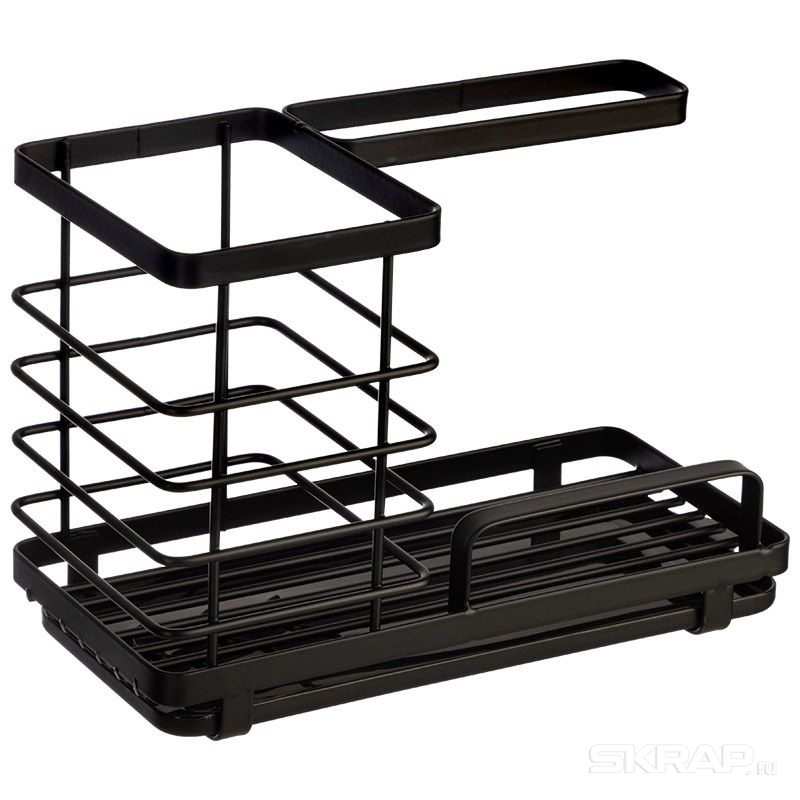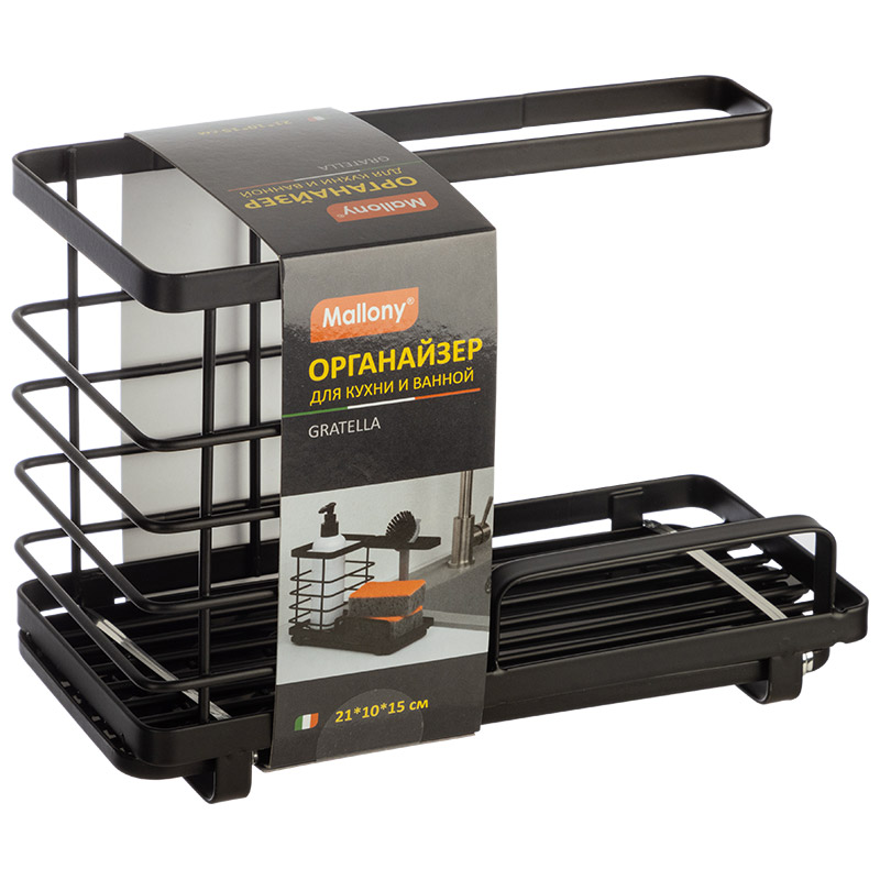 Органайзер для кухни Органайзер предназначен для хранения аксессуаров на кухне или в ванной. Продуманная конструкция позволяет компактно и аккуратно разместить щетки, губки, моющие средства, а наличие съемного пластикового поддона облегчает уход. Размер: 21*10*15 см Материал: металл с порошковым покрытием, пластмасса.