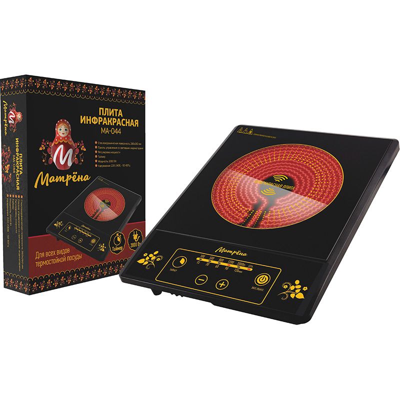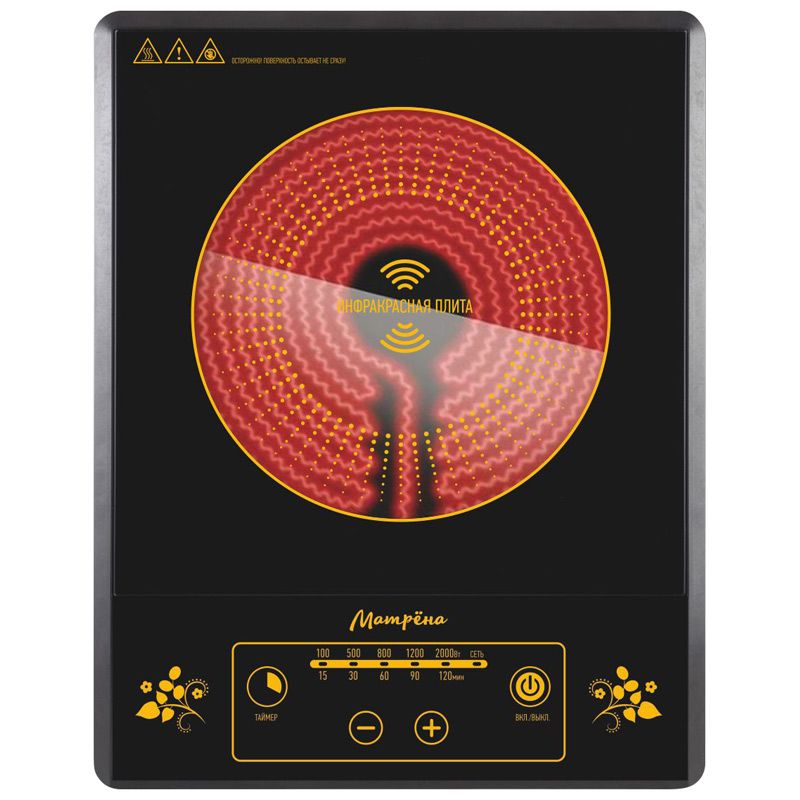 Плита инфракрасная Стеклокерамическая поверхность 260*260 мм Регулировка мощности Регулировка температуры Таймер Защита от перегрева Пригодна для всех видов посуды За счёт быстрого нагрева экономия времени и электроэнергии Мощность 2000 Вт