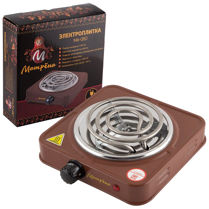 Размер конфорки 140 мм Световой индикатор работы Плавная регулировка температуры конфорки Защита от перегрева Мощность конфорки 1000 Вт Цвет коричневый Длина шнура 62,5 см