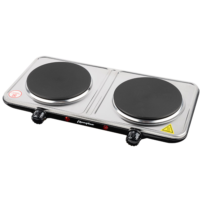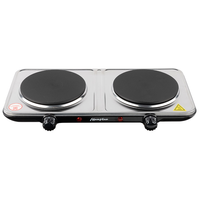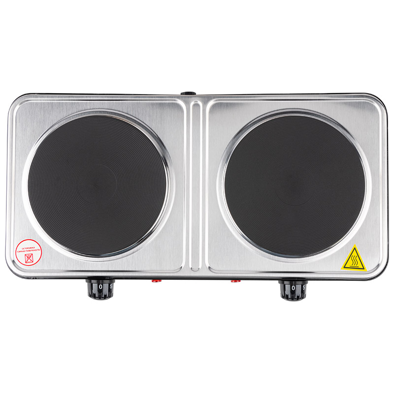 Размер конфорок 155 мм + 155 мм Размер 43*24*7 см Корпус - нержавеющая сталь Световой индикатор работы Плавная регулировка температуры конфорки Защита от перегрева Мощность конфорок 1000 Вт + 1000 Вт Длина шнура 64,5 см