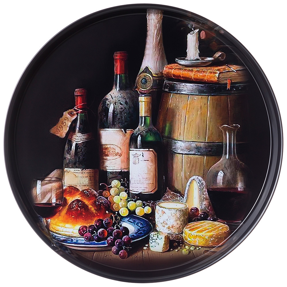 Поднос имеет оптимальную круглую форму диаметром 33 см и удобные для переноса содержимого приподнятые стенки высотой 2,1 см.