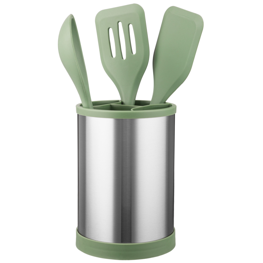 Подставка для столовых приборов выполненная из прочного ABS-пласти-ка и высококачественной нержавеющей стали, предназначена для размещения и хранения вилок, ложек, ножей и других принадлежностей до полного высыхания. Имеет компактные форму и габариты.Органайзер для кухни совмещает функции подставки и сушилки после мойки. Используется в настольном варианте - её можно разместить непосредственно на раковине, столешнице, а также на полке в кухонном шкафу.Стильный лаконичный дизайн идеально дополнит интерьер Вашей кухни, увеличит свободное пространство, будет служить долгое время!Можно мыть в посудомоечной машине