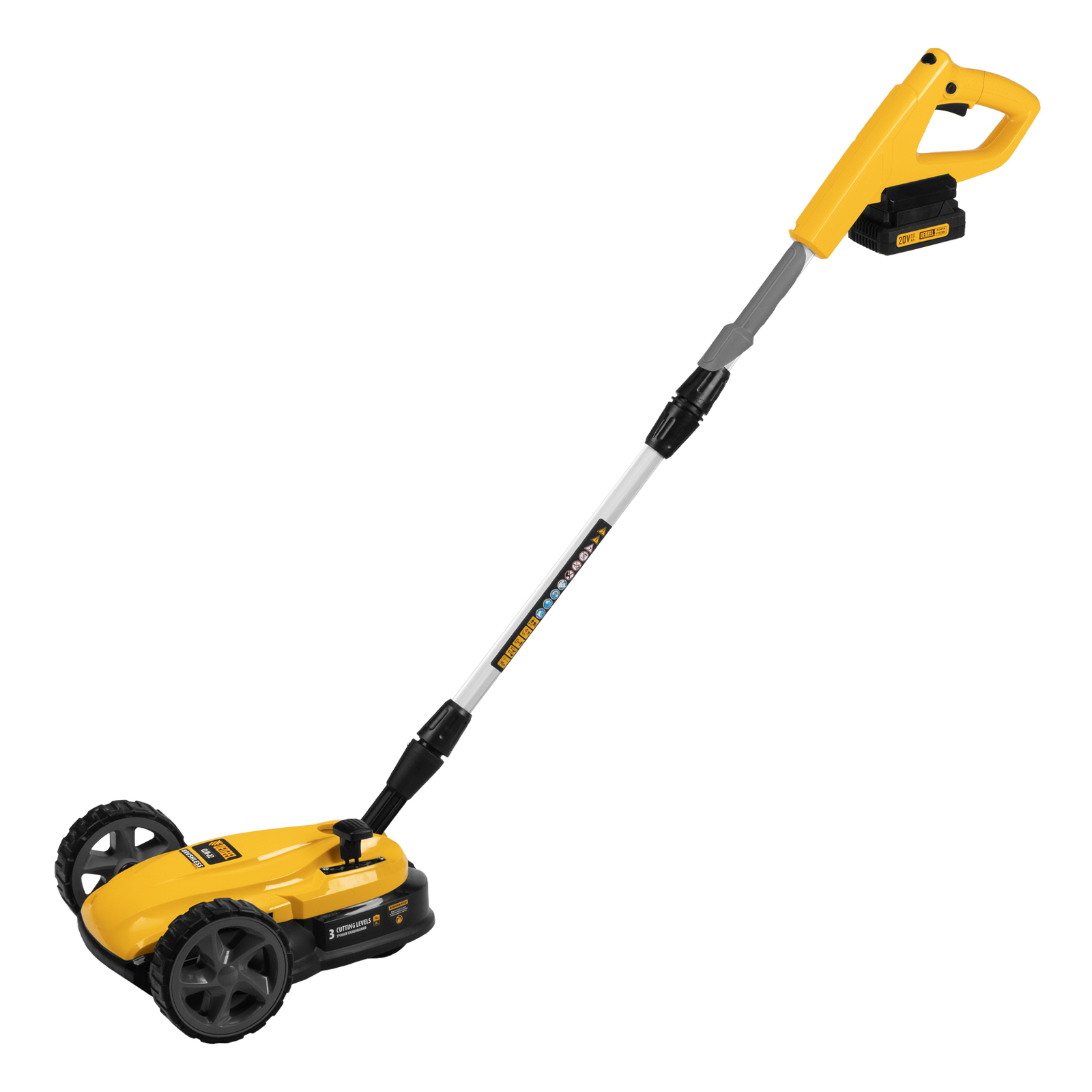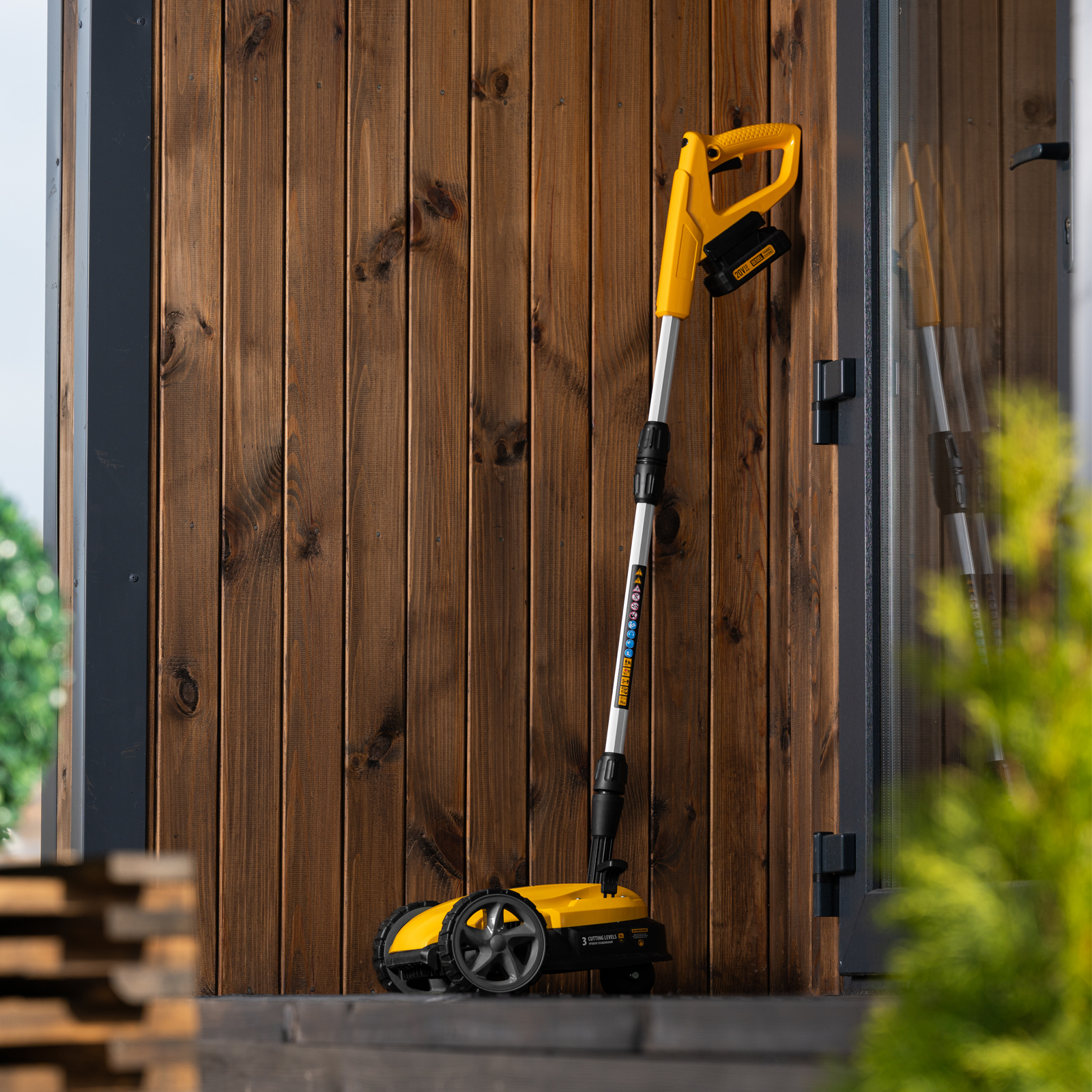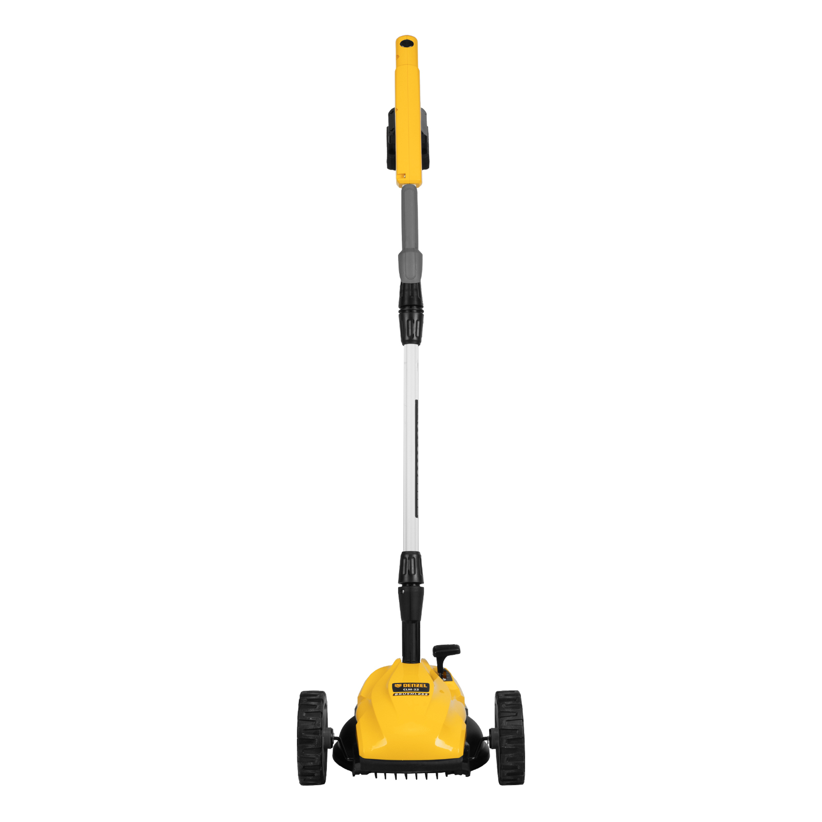 Мобильность — благодаря небольшому весу 3,7 кг (без АКБ), двум большим и одному малому сферическому колесу технику легко перемещать, косить траву удобно даже в узких и труднодоступных местах.