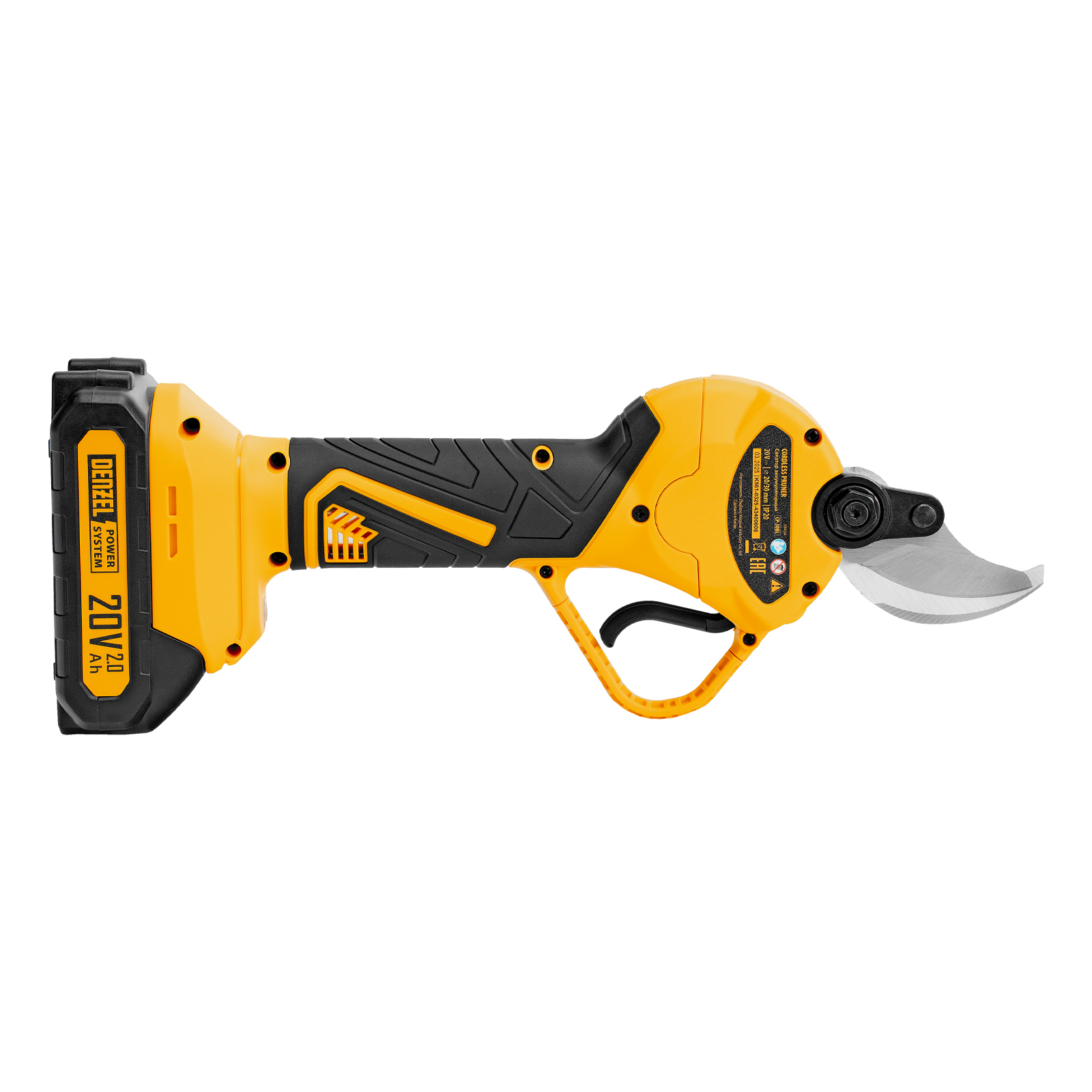 Безопасность — блокировка пуска исключает случайное включение; смыкание лезвий блокируется, если не пользоваться секатором в течение некоторого времени.