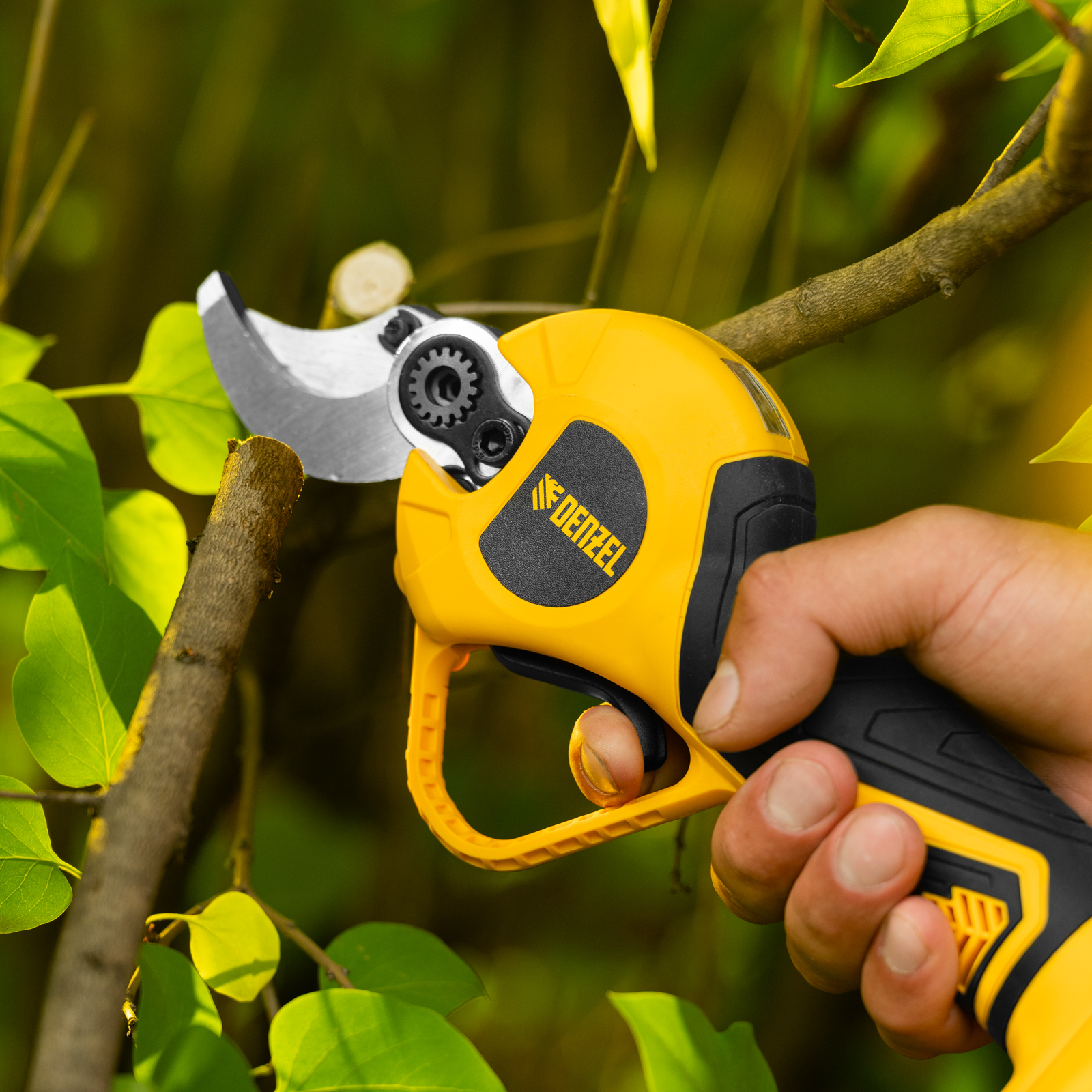 Эффективная работа — электронная регулировка раскрытия лезвий и двухступенчатый редуктор обеспечивают точность и комфорт при каждом срезе.
