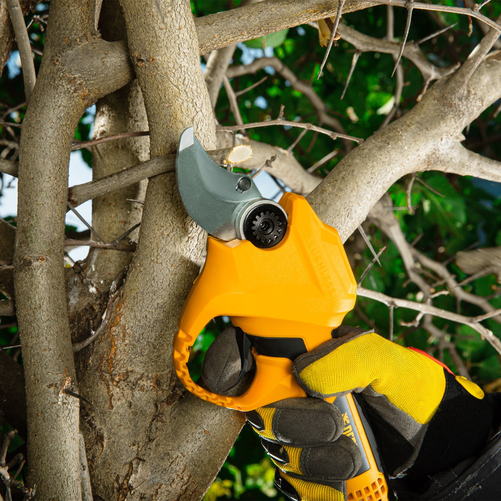 Безопасное хранение и транспортировка — после выключения режущий узел переводится в сомкнутое положение, в комплекте имеется защитный чехол.