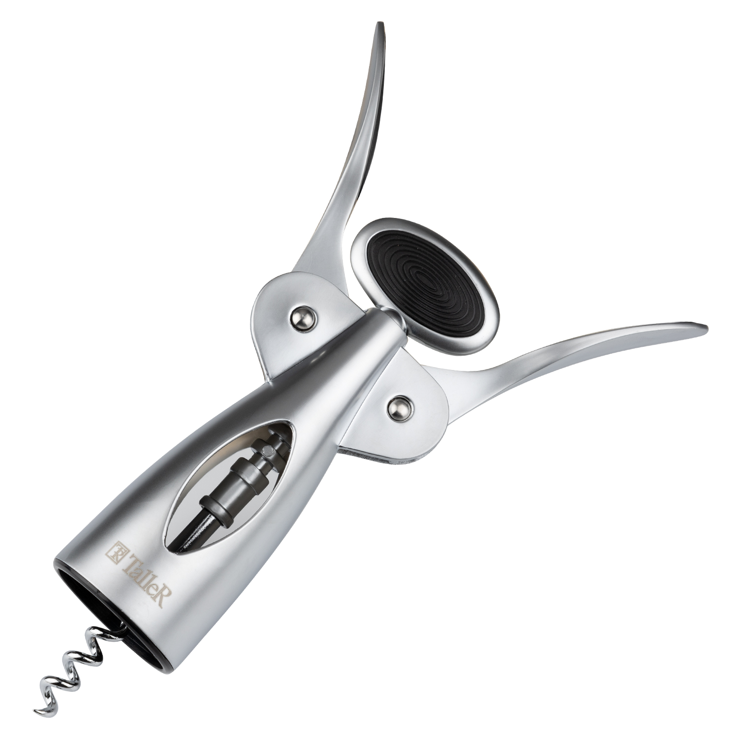 Выполнен из хромированного цинкового сплава. Спираль штопора выполнена из высококачественной хромированной стали и снабжена защитным колпачком. Не используйте для чистки кухонных приборов TalleR абразивные моющие средства и металлические мочалки, т.к. появление царапин испортит внешний вид изделия.