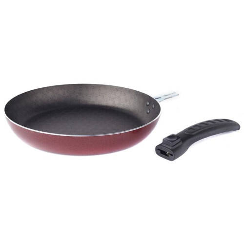 22см, алюминий (дно 1.8мм), антипригарное покрытие, крышка стекло, съемная ручка из термостойкого пластика, подходит для духовок, подходит для всех видов плит, кроме индукции, подходит для посудомоечной машины