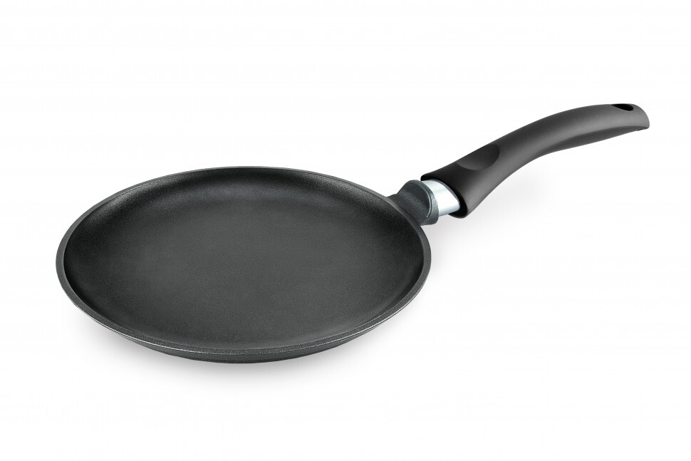 Качественные материалы и новейшие технологии – залог создания долговечной и безопасной продукции. Серия сковород «Литая» является классикой: безупречно подходит для ежедневного использования, создана из материалов высшего класса безопасности на новейшем оборудовании. Многослойное высококачественное антипригарное покрытие позволяет готовить без масла или с минимальным количеством масла и сохранять натуральный вкус продуктов. Безопасное антипригарное покрытие изготовлено на водно-кремниевой основе, ресурс сковороды более 2000 условных циклов приготовления, антипригарные свойства не теряются даже при внешних механических повреждениях. Ручка не нагревается в процессе приготовления, что обеспечивает максимальный комфорт. Блинная сковорода имеет низкий борт и удобную ручку, благодаря чему легко переворачивать и снимать блины. Утолщенное дно обеспечивает особые термоаккумулирующие свойства: блин равномерно пропекается по всей толщине и красиво румянится с обеих сторон. Благодаря антипригарному покрытию блины всегда легко снимаются со сковороды и не пригорают, даже при выпекании без использования масла.