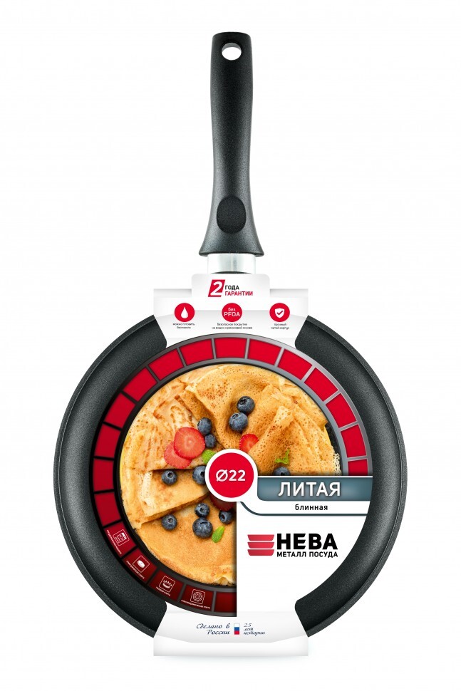Сковорода д/блинов НЕВА МЕТАЛЛ ПОСУДА 6222 22см