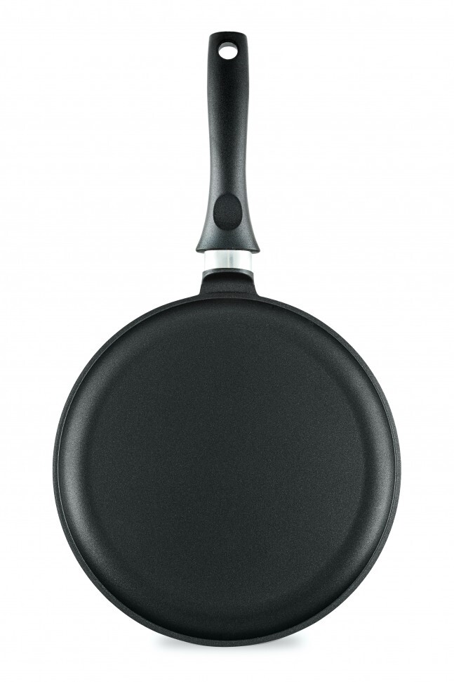 22см, литой алюминий (дно 6мм), антипригарное покрытие, ручка бакелит, подходит для всех видов плит, кроме индукции, не боится царапин, подходит для посудомоечной машины, линия "Традиционная", блинная