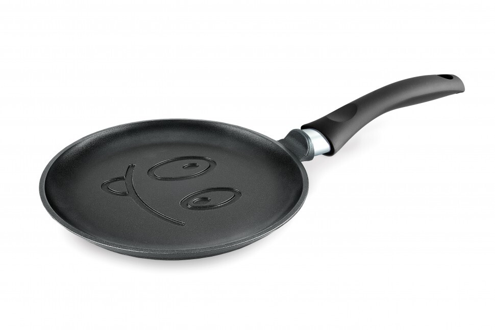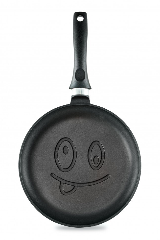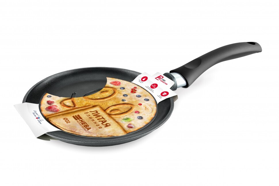 Литая блинная сковорода (блинница) от компании «Нева металл посуда» - первого производителя литой антипригарной посуды в России. НМП 26 лет выпускает антипригарную посуду, более 500 позиций ассортимента. Блинные сковороды с рельефным рисунком популярны у покупателей разного возраста. Сковородки со смайликом, пандой, котом и солнцем. После выпечки рисунки остаются на готовых блинах аппетитным румянцем. Смешной детский смайлик или панда на свежем блине доставит радость как ребёнку, так и взрослому. Блинные сковороды с рисунком универсальны, наличие рисунка не мешает готовить помимо блинов оладьи, драники или яичницу, жарить гренки, разогревать пиццу или другие выпечные изделия. Низкий борт и удобная ручка обеспечивают комфортный хват при заливке теста, переворачивании и съёме. Противопригарная сковорода с рисунком - мечта любой молодой семьи. Блинница изготовлена из литого алюминия с прочным и долговечным антипригарным покрытием, которое позволяет готовить без добавления масла или с минимальным его количеством. Высококачественное и многослойное антипригарное покрытие не содержит ПФОА и безопасно для здоровья даже в случае повреждения. При жарке тепло равномерно распределяется по поверхности и блины лучше пропекаются и приобретают отличные вкусовые качества. Легко моется вручную, можно мыть в посудомоечной машине или просто протереть бумажным полотенцем.