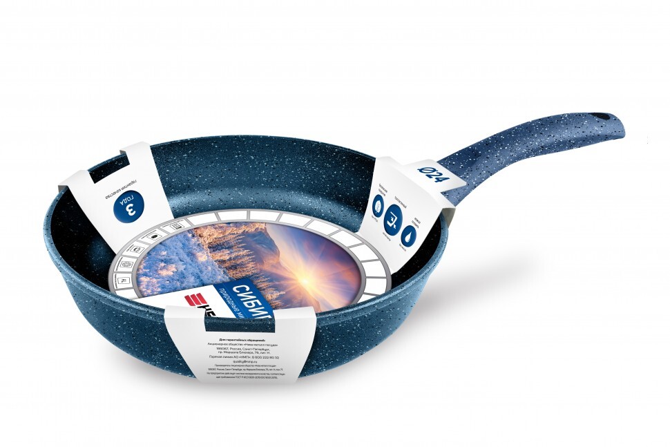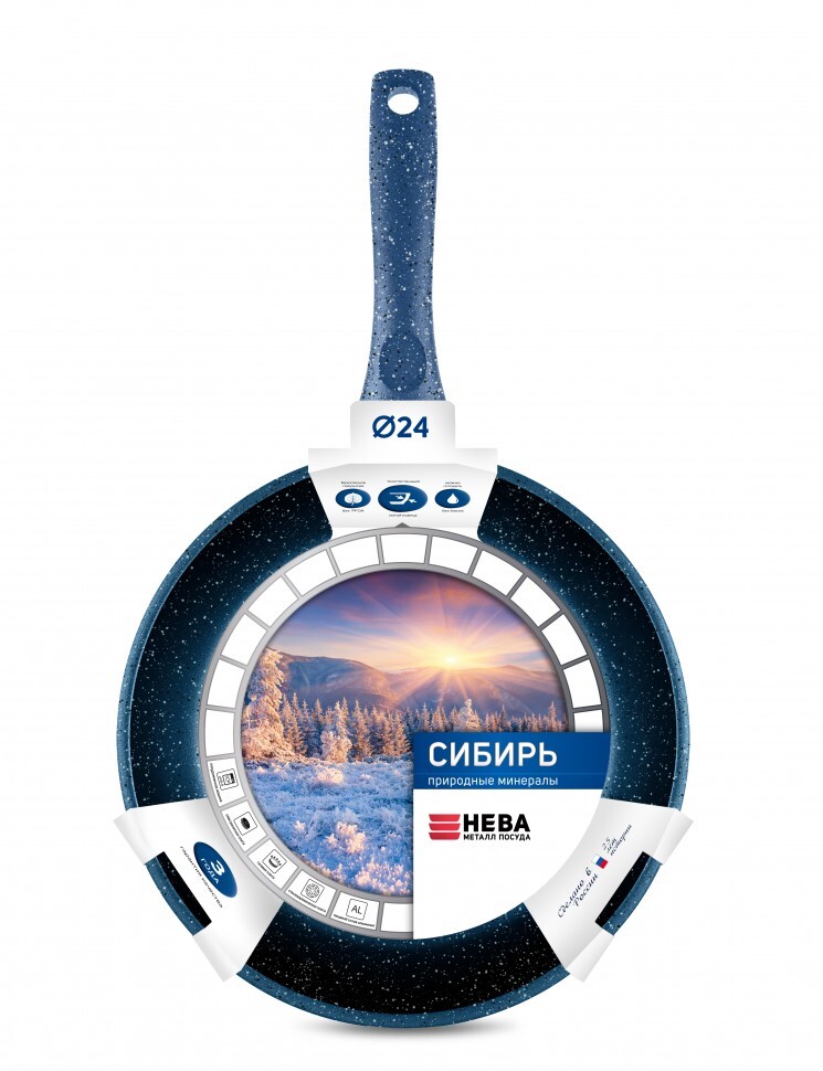 Дизайн новой линии сковород «Сибирь» вдохновлен красотой природных минералов и выполнен в стиле «Сибирские морозы», итальянская ручка с покрытием «Soft-touch» имитирует эффект вьюги ранним утром. Необычное дизайнерское решение будет непременно вдохновлять вас на кулинарные эксперименты! Эта сковорода сочетает в себе безопасность, удобство и долговечность использования. Толстостенный литой корпус не деформируется, равномерно нагревается и долго сохраняет тепло. Благодаря высоким стенкам сковорода многофункциональна и удобна в эксплуатации: в ней можно жарить, пассеровать, тушить и томить. Сковорода отлично подходит для приготовления гарниров и блюд с большим количеством ингредиентов. Премиальное антипригарное покрытие отличается высокой износостойкостью, устойчиво к царапинам и другим повреждениям, позволяет готовить любимые блюда без добавления масла, сохраняя сочность и полезные свойства продуктов. Покрытие не содержит PFOA (перфтороктановую кислоту), безопасно для контакта с пищевыми продуктами, а также в производстве и для окружающей среды. Изделие подходит для всех типов плит, кроме индукционных.