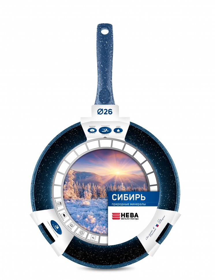 Дизайн новой линии сковород «Сибирь» вдохновлен красотой природных минералов и выполнен в стиле «Сибирские морозы», итальянская ручка с покрытием «Soft-touch» имитирует эффект вьюги ранним утром. Необычное дизайнерское решение будет непременно вдохновлять вас на кулинарные эксперименты!