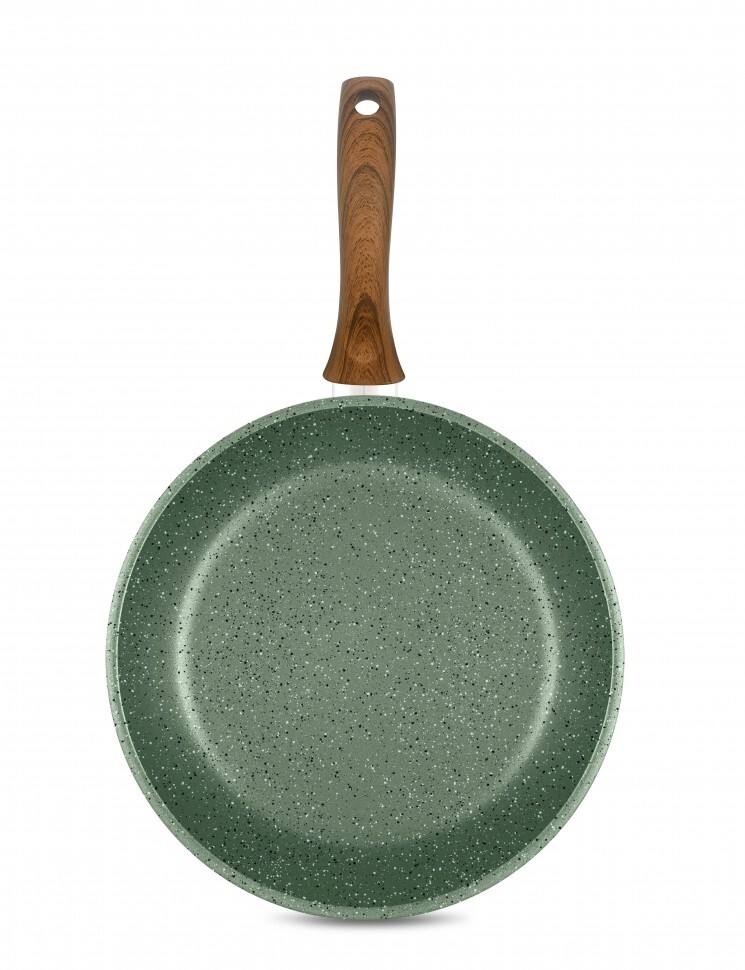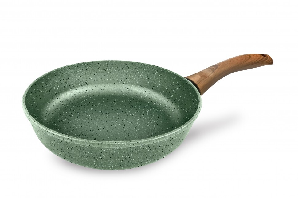 Сковорода выполнена в натуральном зеленом цвете и комплектуется эргономичной ручкой с имитацией дерева.