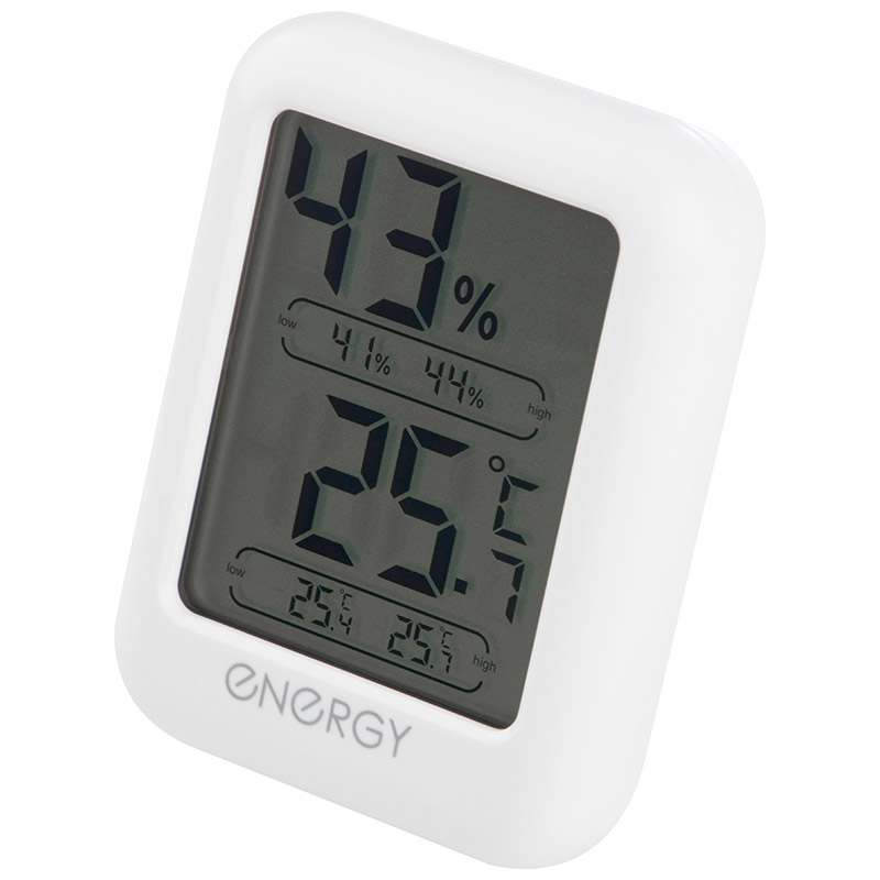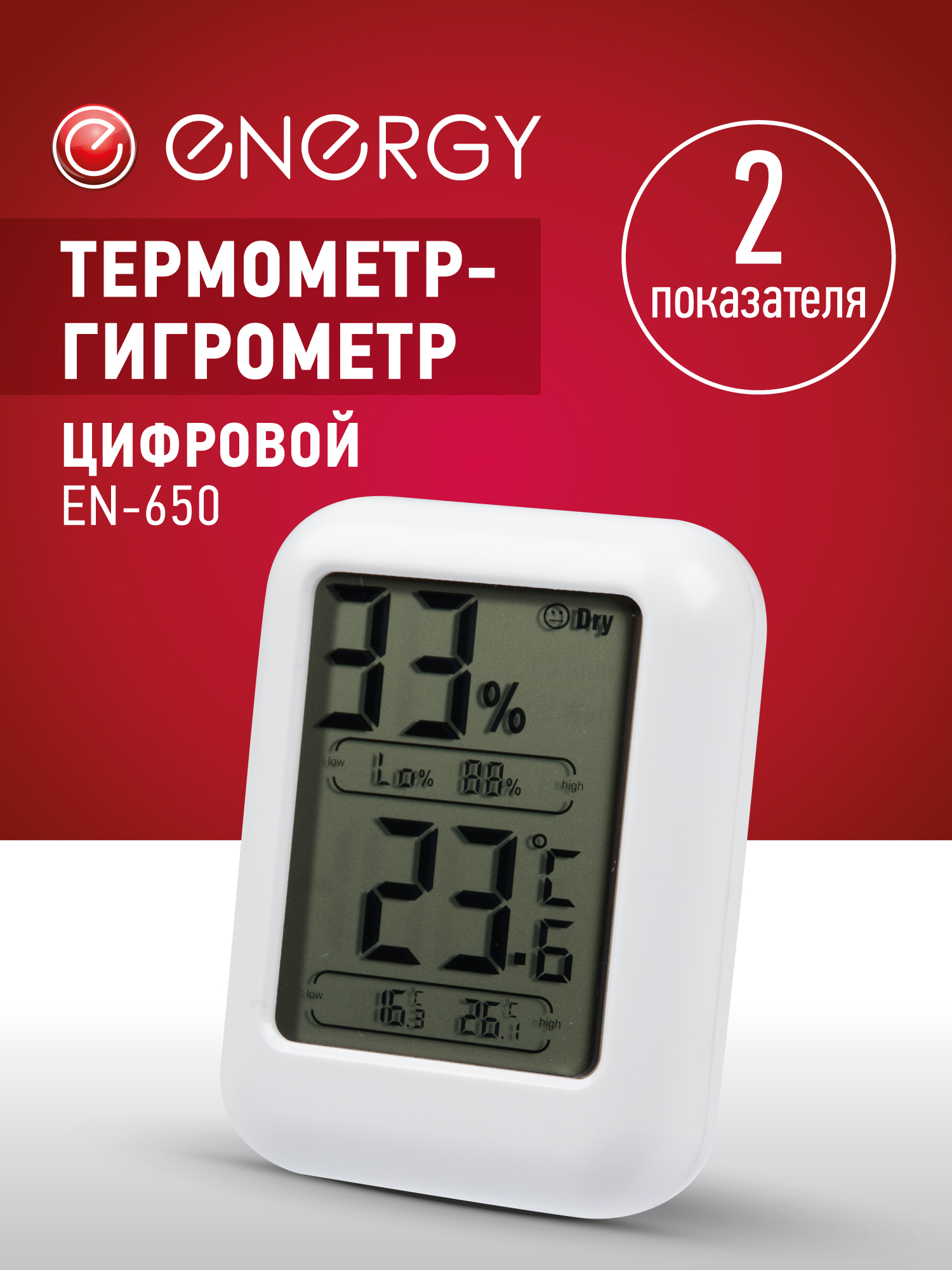 Мощность 1,5 Вт Измерение температуры и влажности в прмещении, индикатор комфорта(эмодзи). Питание от 1 батарейки типа 1*ААА (1,5 В)входит в комплект 2 показателя Показатель 1: t в помещении °C/°F Показатель 2: относительная влажность % Диапазон измерения t: от -10°C до +50°C Погрешность +/-1°C Цена деления 0,1°C Диапазон относительной влажности: 10%-99% Точность измерения влажности:±5% Размещение: -настольное(складная подставка) -настенное/на металлическую поверхность(встроенный магнит). Состав:пластмасса, металл Напряжение 1,5 В Размеры продукта: 60 x 79 x 22 мм, вес 66 г