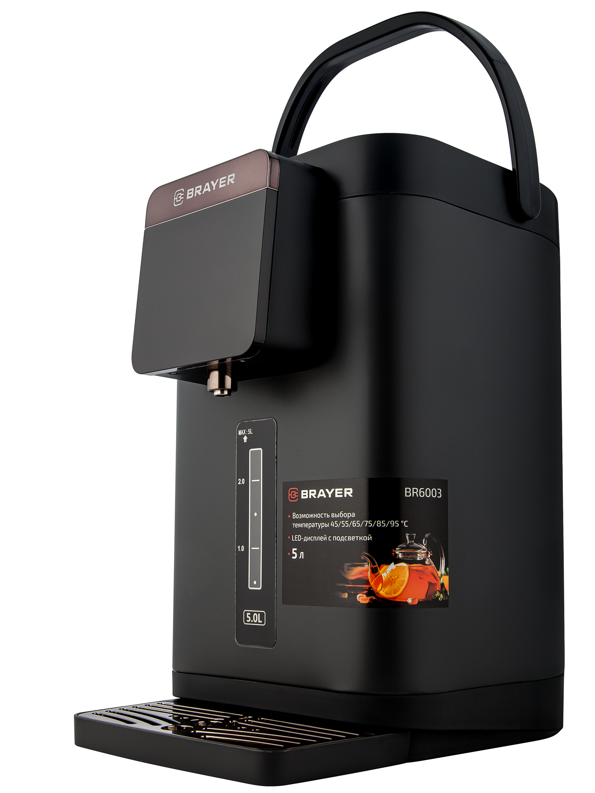 1450Вт, 5.0л, корпус сталь, LED-дисплей, поддержание t (45C, 55С, 65С, 75С, 85С, 98С), функция повторного кипячения, функция поддержания температуры воды, сенсорное управление, автоотключение, съёмный поддон для капель