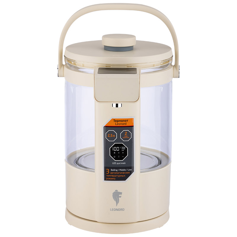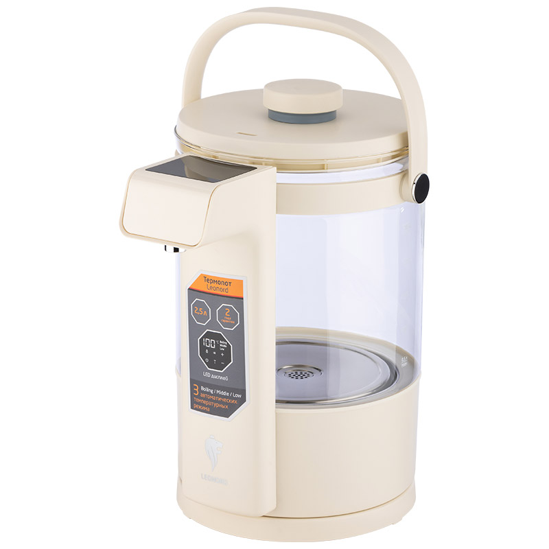 Мощность 1260-1500 Вт Объем 2,5 л Колба из термостойкого стекла LED дисплей Сенсорная панель управления 3 автоматических температурных режима Диапазон настройки температуры 40 - 95 °C Автоматическое поддержание температуры после кипячения Поворот на подставке 360° Ручка для удобной переноски Автоматическая подача воды нажатием кнопки Замок-защита от детей Закрытый нагревательный элемент из нержавеющей стали Защита от работы без воды Напряжение 220-240 В, 50-60 Гц Цвет белый Размер 24*18*29,8 Гарантия 2 года Длина шнура 78 см