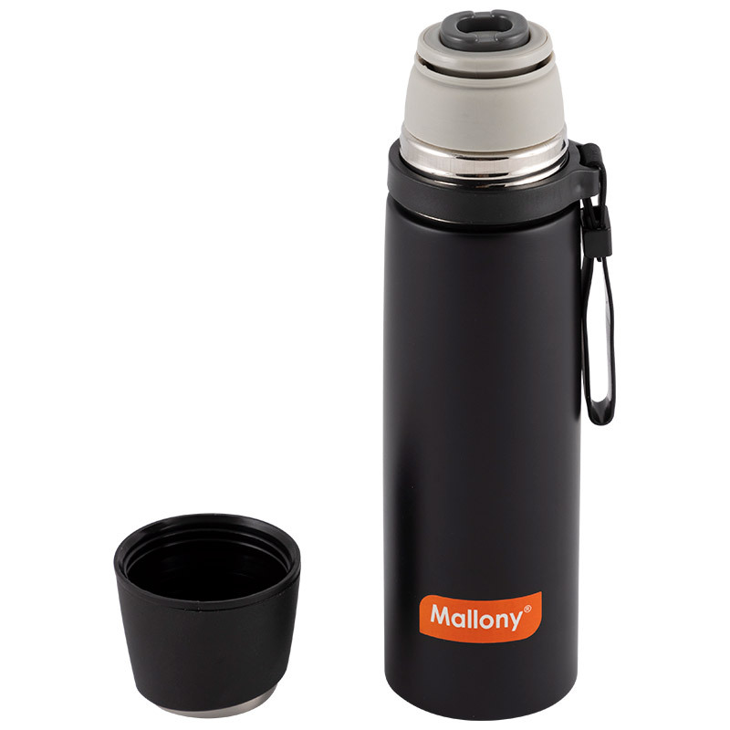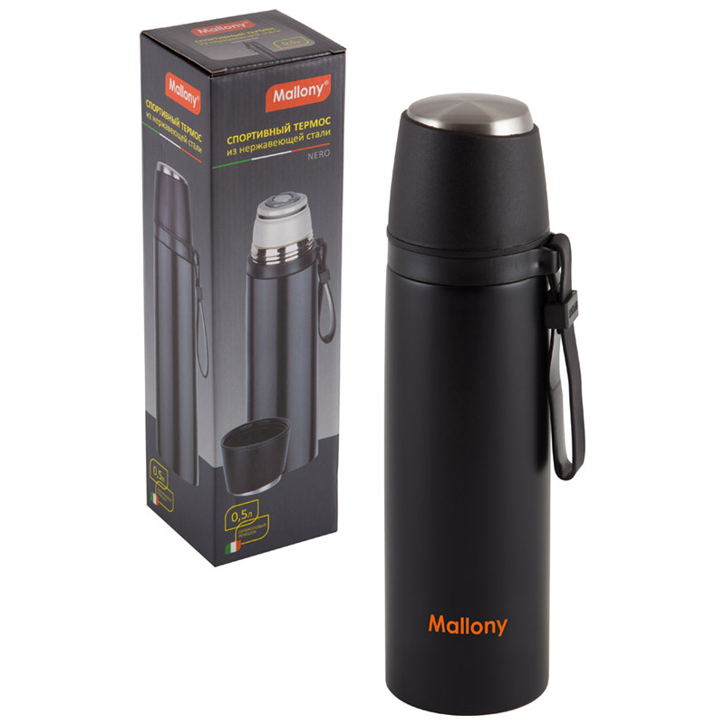 Емкость: 0,5 л Материал: нержавеющая сталь, пластмасса, силикон - Стильный термос выполнен из нержавеющей стали (колба и корпус из 201 стали) с двойными вакуумными стенками. - Поддерживает нужную температуру напитка (холодную или горячую) - В комплекте удобная пластиковая чашка и силиконовый ремень для переноски. - Приятное на ощупь матовое покрытие. - Ширина горлышка 4,5 см