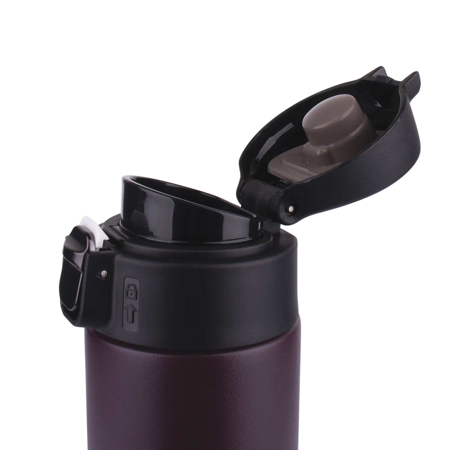 Удобный клапан позволяет пить без откручивания крышки и держать термос одной рукой.