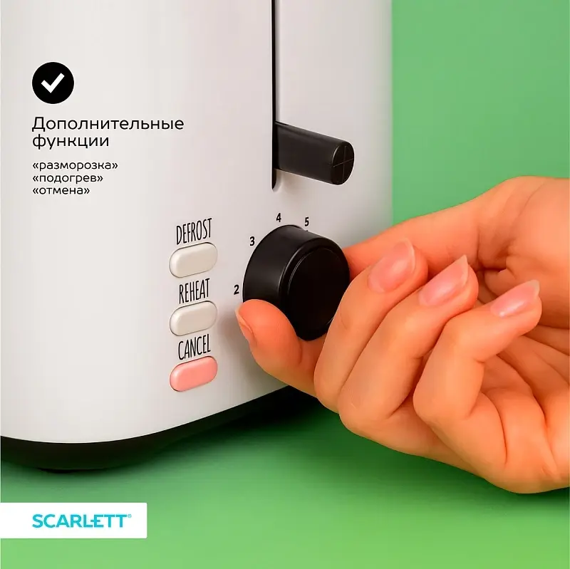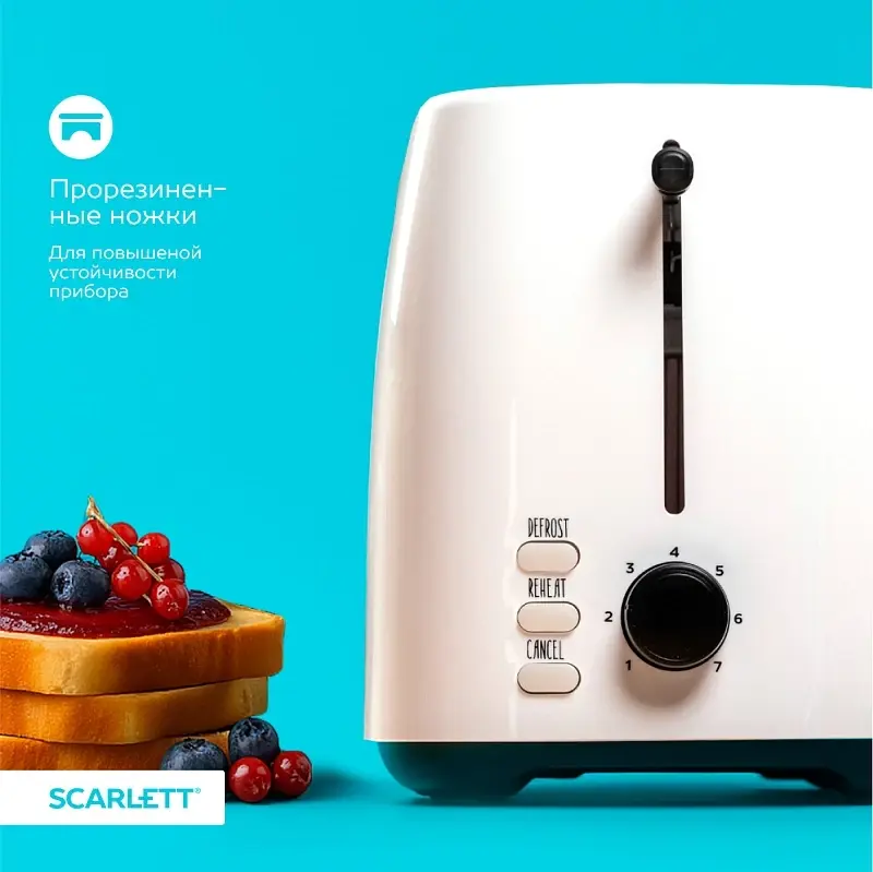 Тостер Scarlett SC-TM11032 – главный помощник в приготовлении завтраков для всей семьи. Выберите на свой вкус 7 уровней равномерной прожарки!