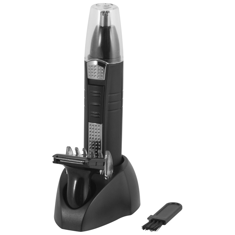 Мощность 1,5 Вт Питание от батарейки 1*АА (не входит в комплект) Лезвия из нержавеющей стали Телескопическая насадка 2мм-8 мм Прорезиненное покрытие корпуса Soft Touch В комплекте: Насадка для носа и ушей Насадка для бороды Щеточка для очистки лезвий Подставка
