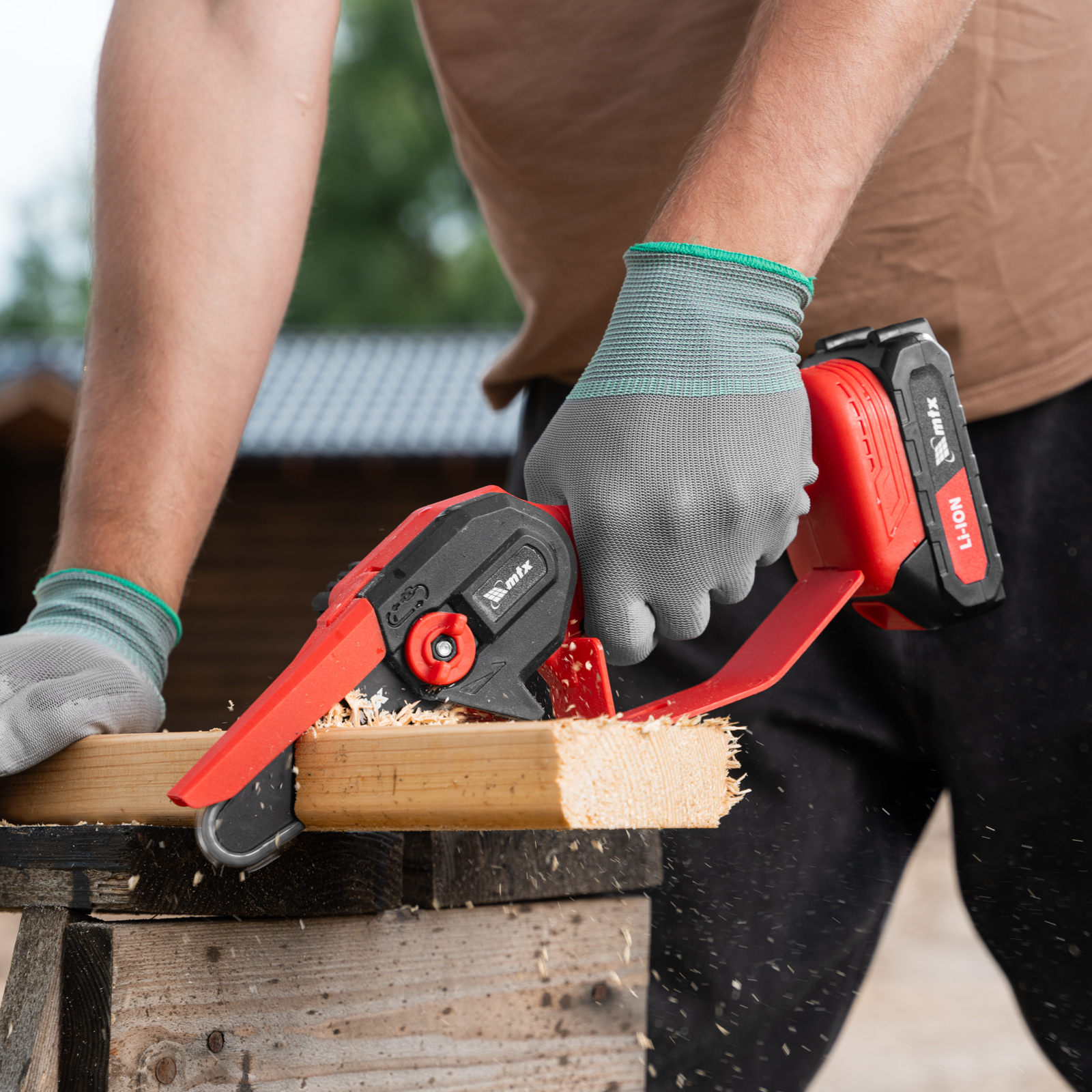 Работа без ощущения усталости — вес пилы с аккумулятором составляет всего 1 кг, поэтому ее удобно держать в руках.